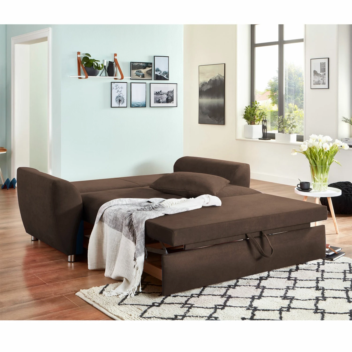 2-Sitzer Schlafsofa – espresso – Flachgewebe – mit Rückenkissen