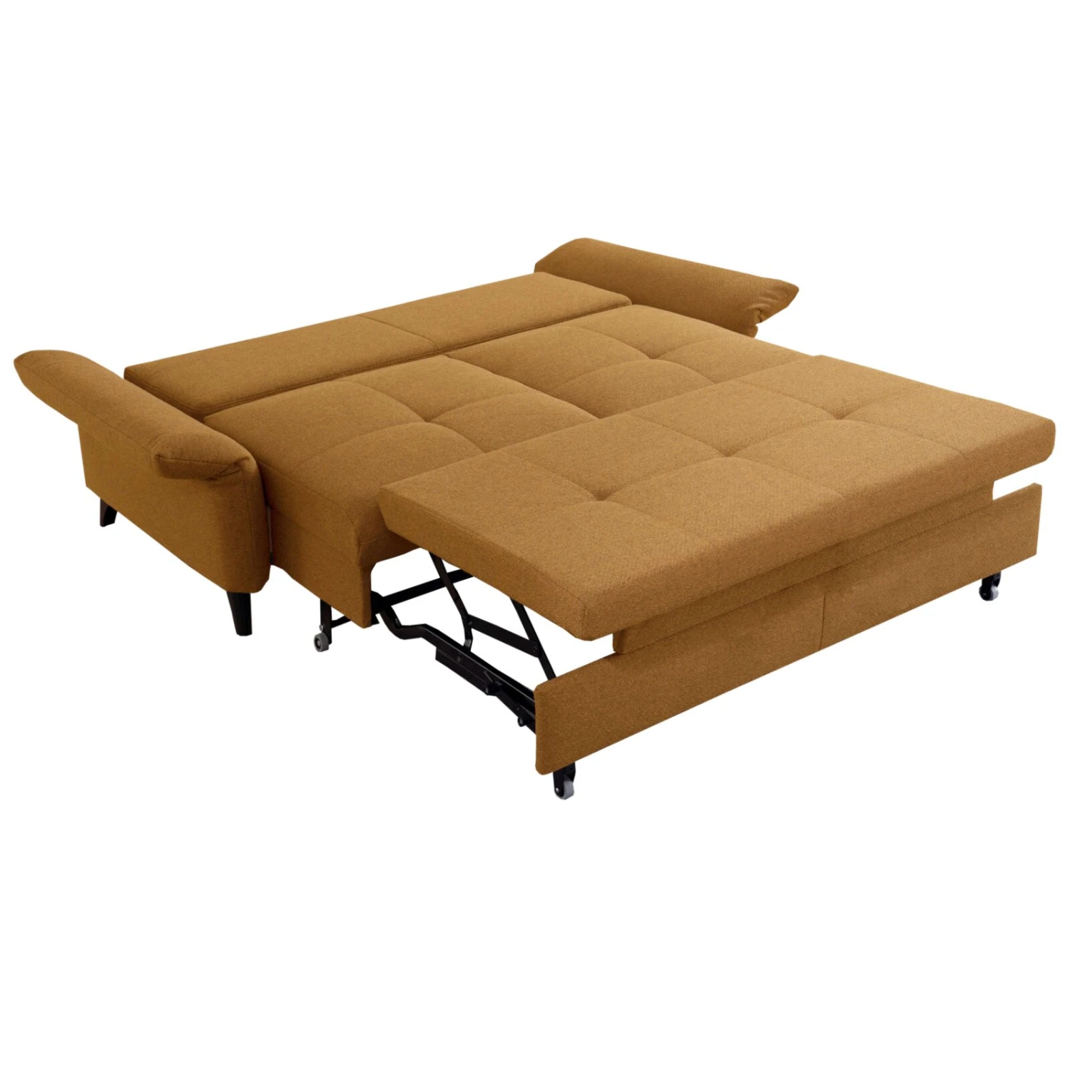 2-Sitzer Schlafsofa – gelb – mit Bettfunktion – mit Kissen