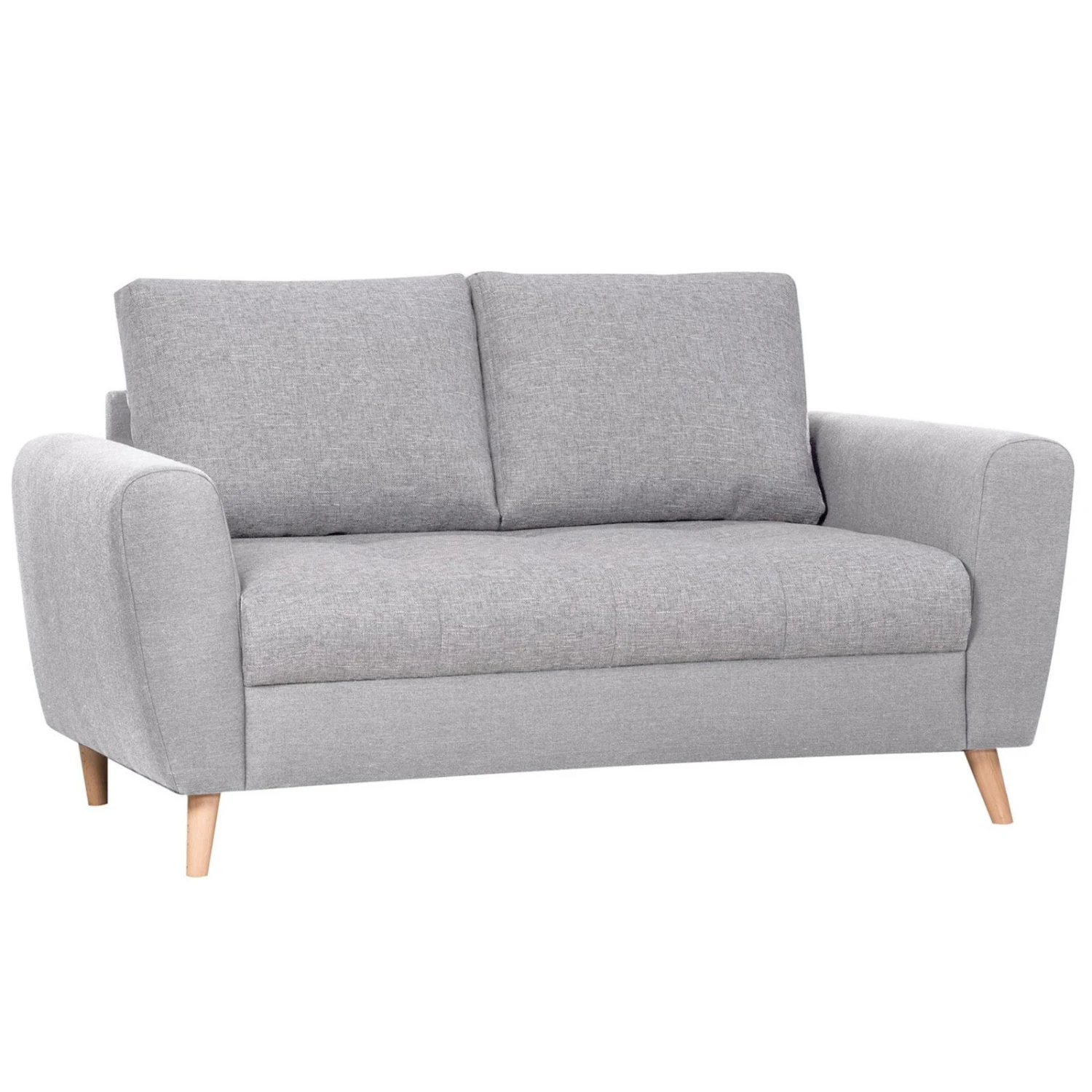 Trendiges 2-Sitzer Sofa im skandinavischem Stil. Das Zusammenspiel zwischen dem grauen Bezugsstoff und den formschönen Holzfüßen macht dieses Sofa zu einer echten Augenweide. Der Rücken ist mit dem Originalstoff bezogen, so dass Sie dieses Sofa nach Wunsch auch in der Mitte des Raumes platzieren können. Die Kombination aus der Wellenunterfederung und der Polyschaum-Polsterung erzeugt einen bequemen und stabilen Sitzkomfort. Holen Sie sich dieses stylische Sitzmöbel in Ihr Zuhause!