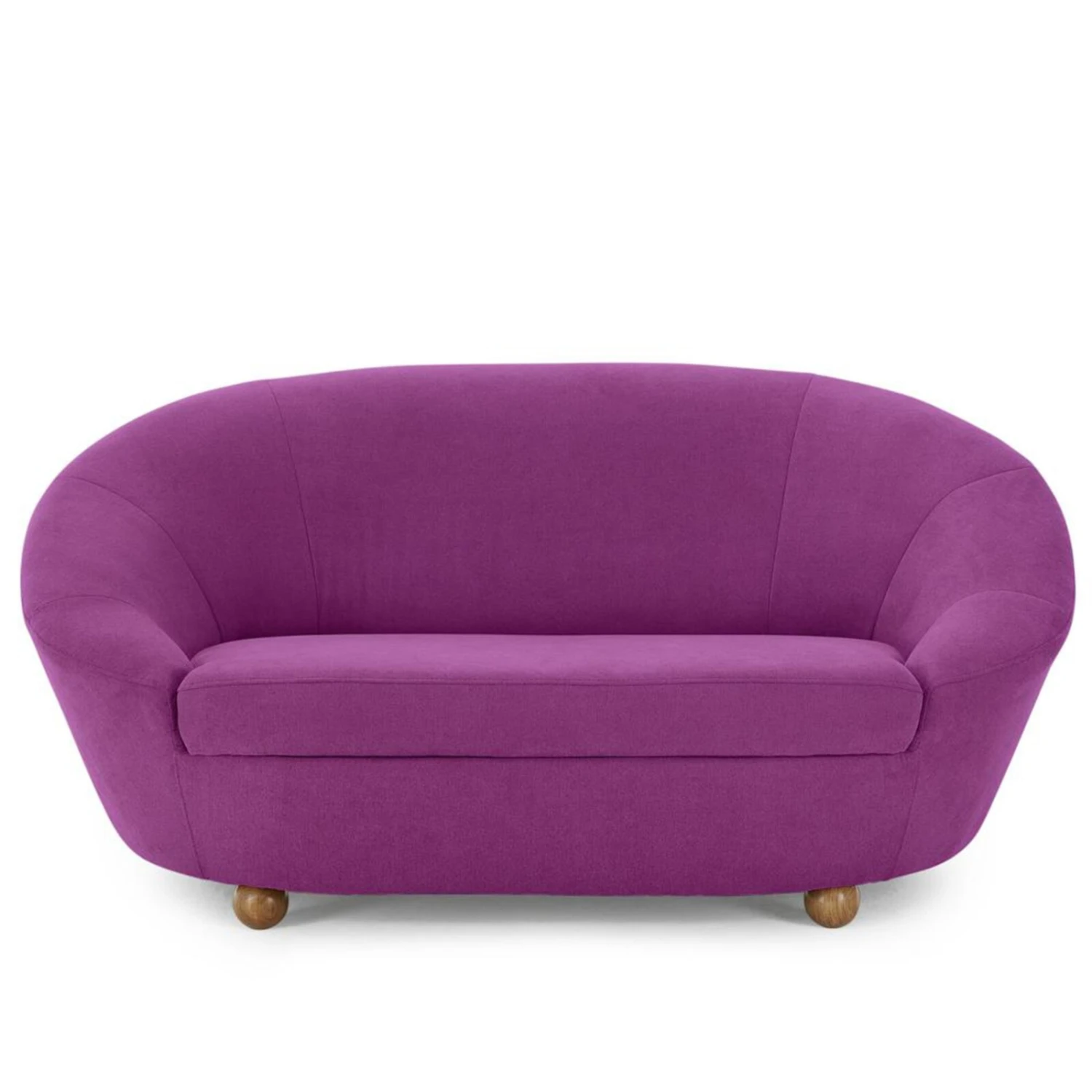 Dieses stylische 2er-Sofa bringt einen eleganten Flair mit sich. Durch die runde Form und die Polsterung aus hochwertigem Polyätherschaum entsteht ein angenehmer Sitzkomfort. Die runden Holzfüße verleihen dem Sofa ein einzigartiges Design und machen es zu einem echten Eyecatcher. Diese Couch ist ideal für alle, die außergewöhnliches Design und Komfort kombinieren wollen.