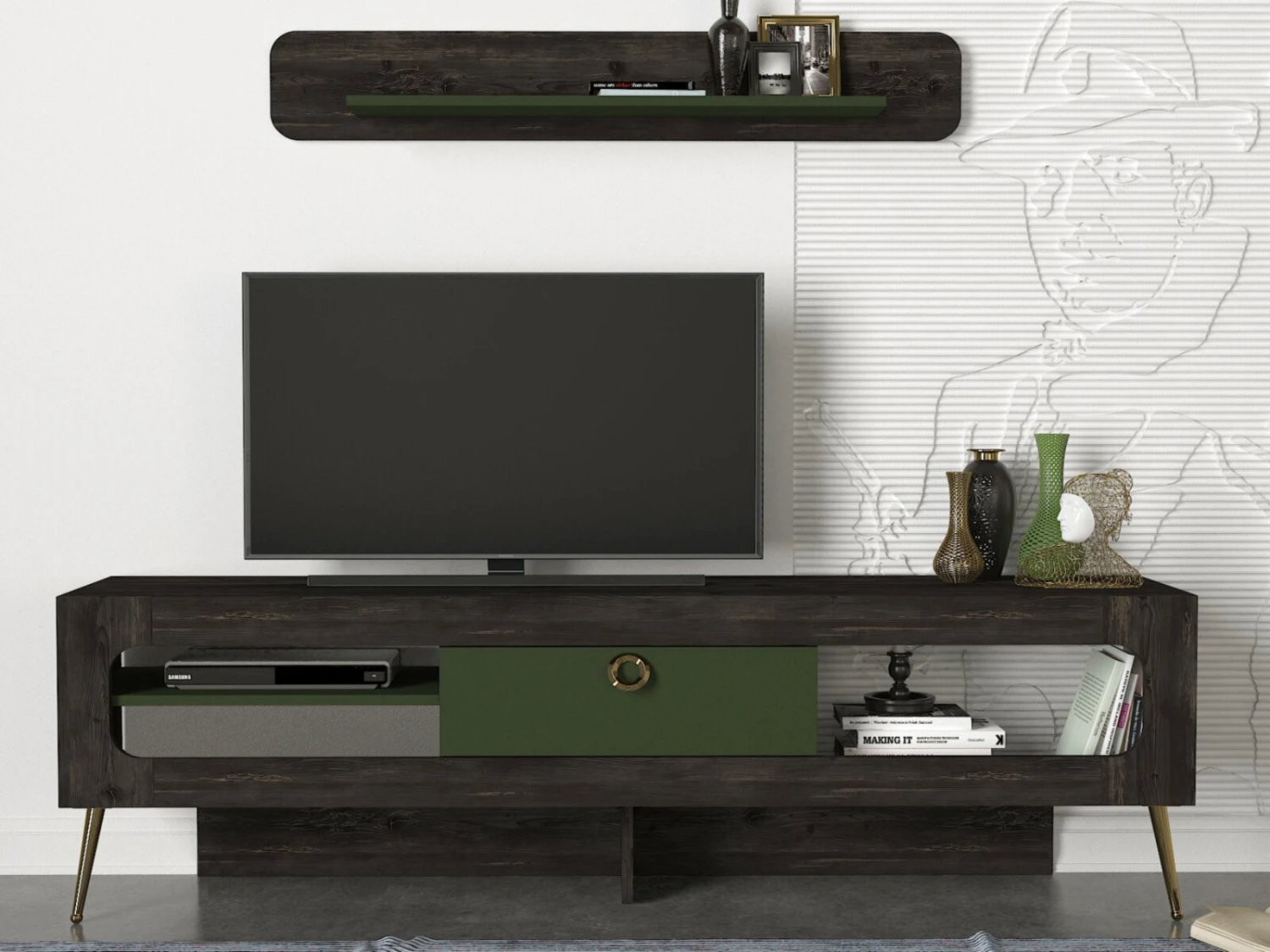 2-teilige Wohnwand – braun-dunkelgrau-grün – 180 cm