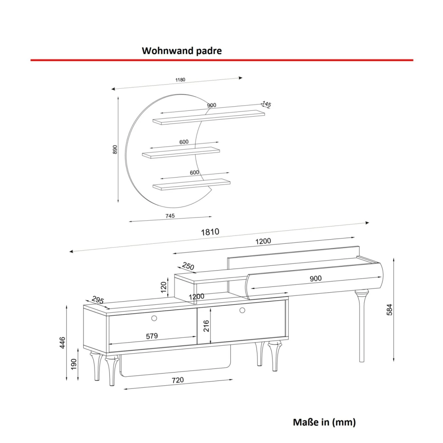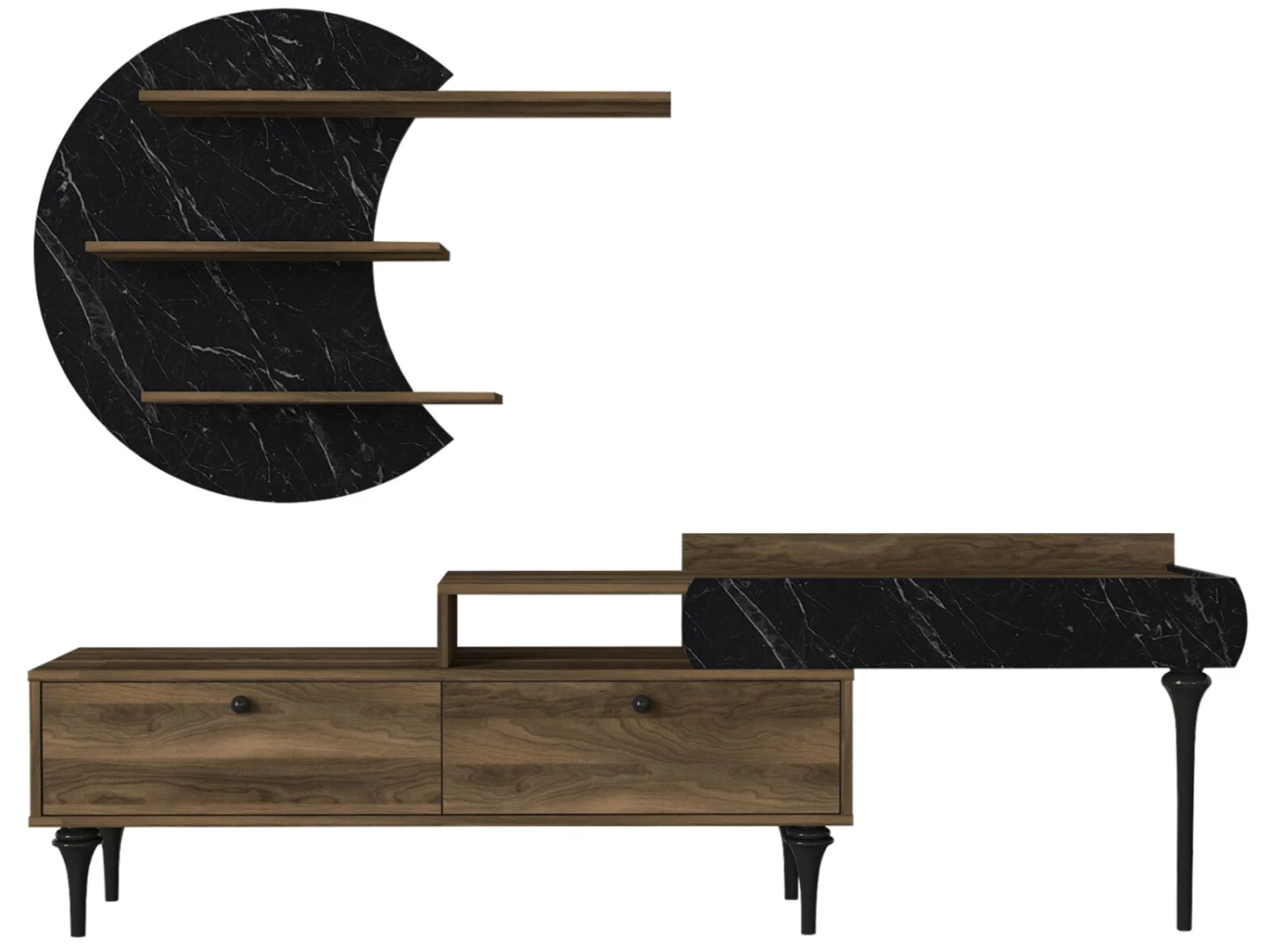 2-teilige Wohnwand – Marmor-Optik – braun – 181 cm