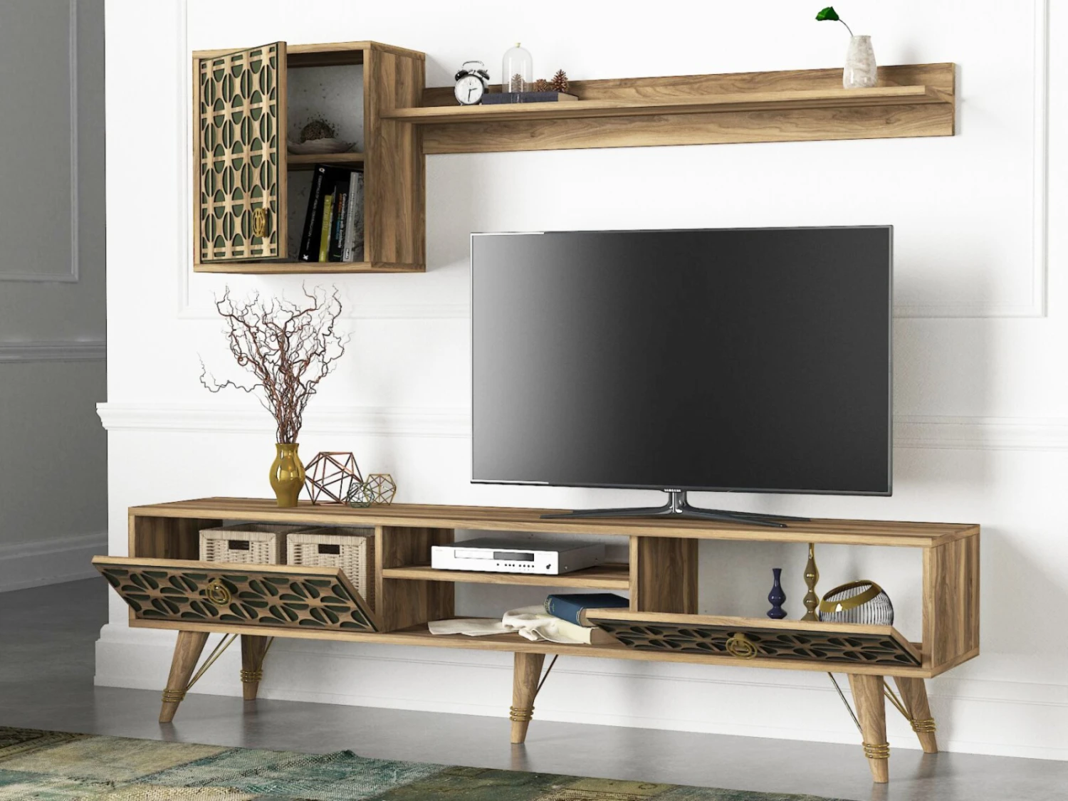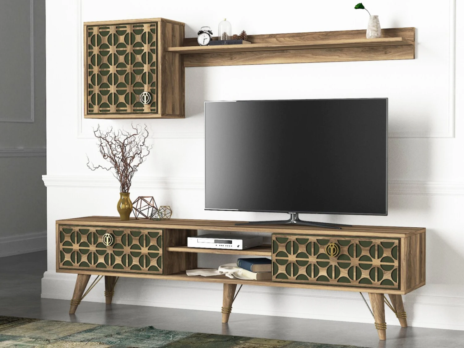 2-teilige Wohnwand – Walnuss-dunkelgrün – 180 cm