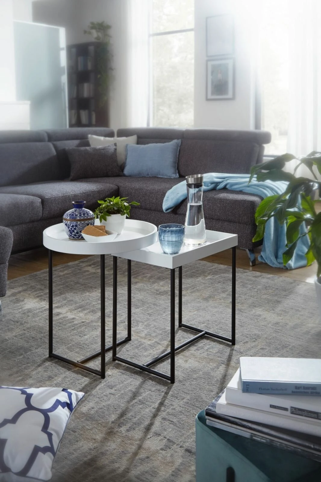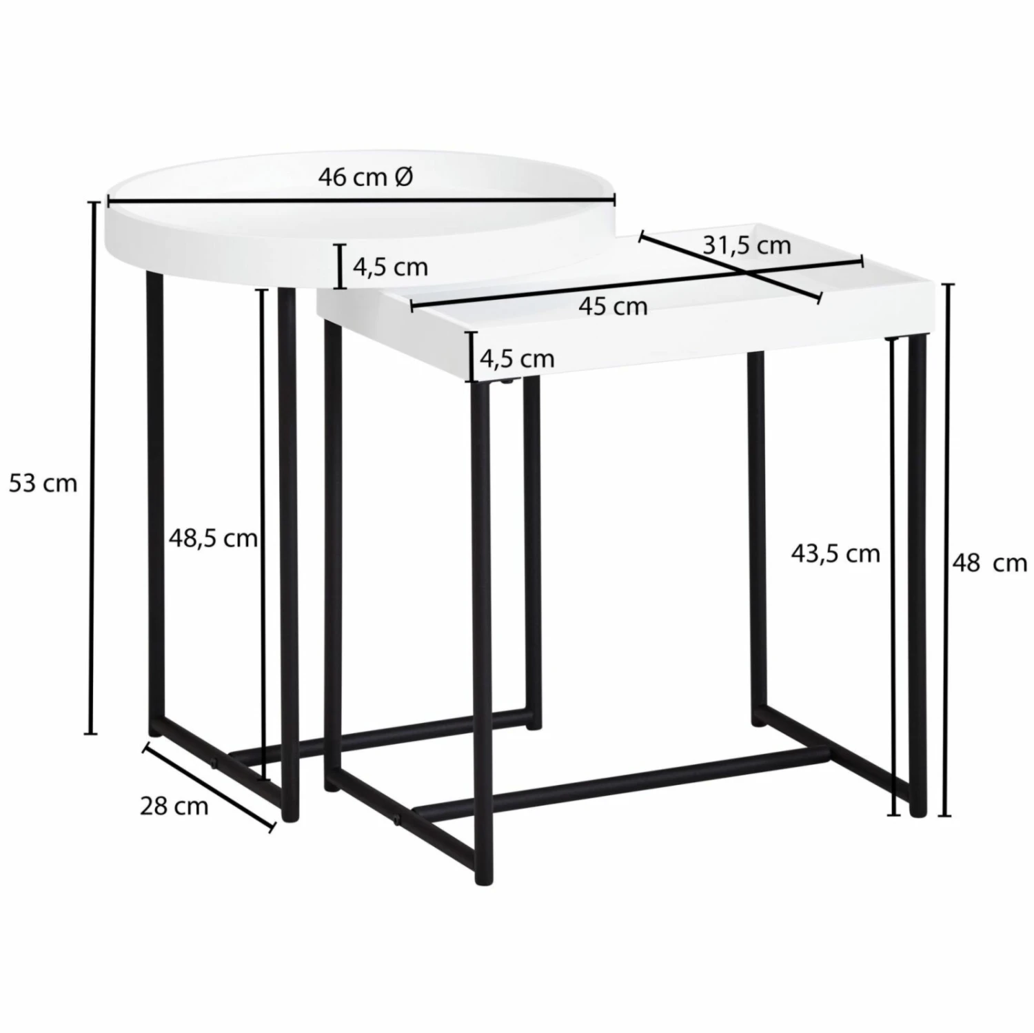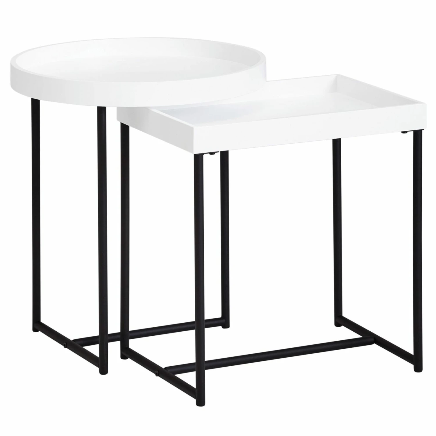 2er-Set Beistelltisch – weiß-schwarz – rund und eckig