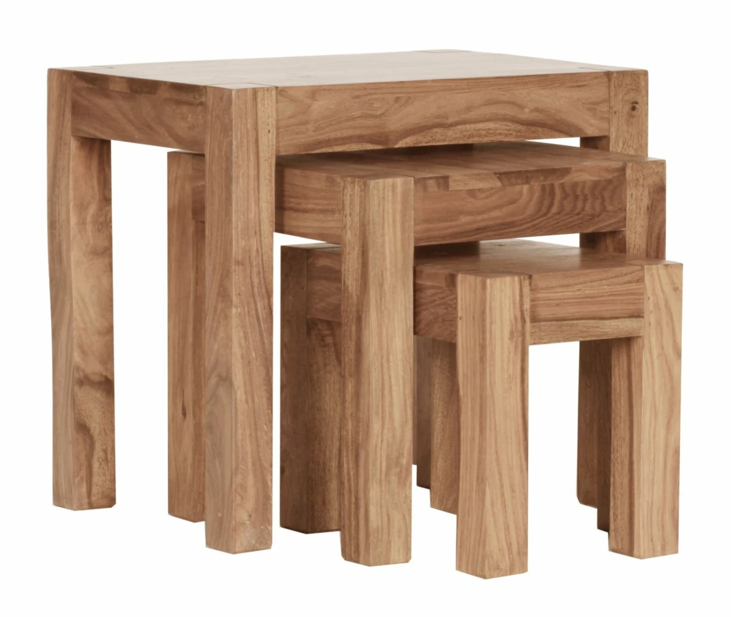 3-teiliger Satztisch – klar lackiert – Akazie massiv