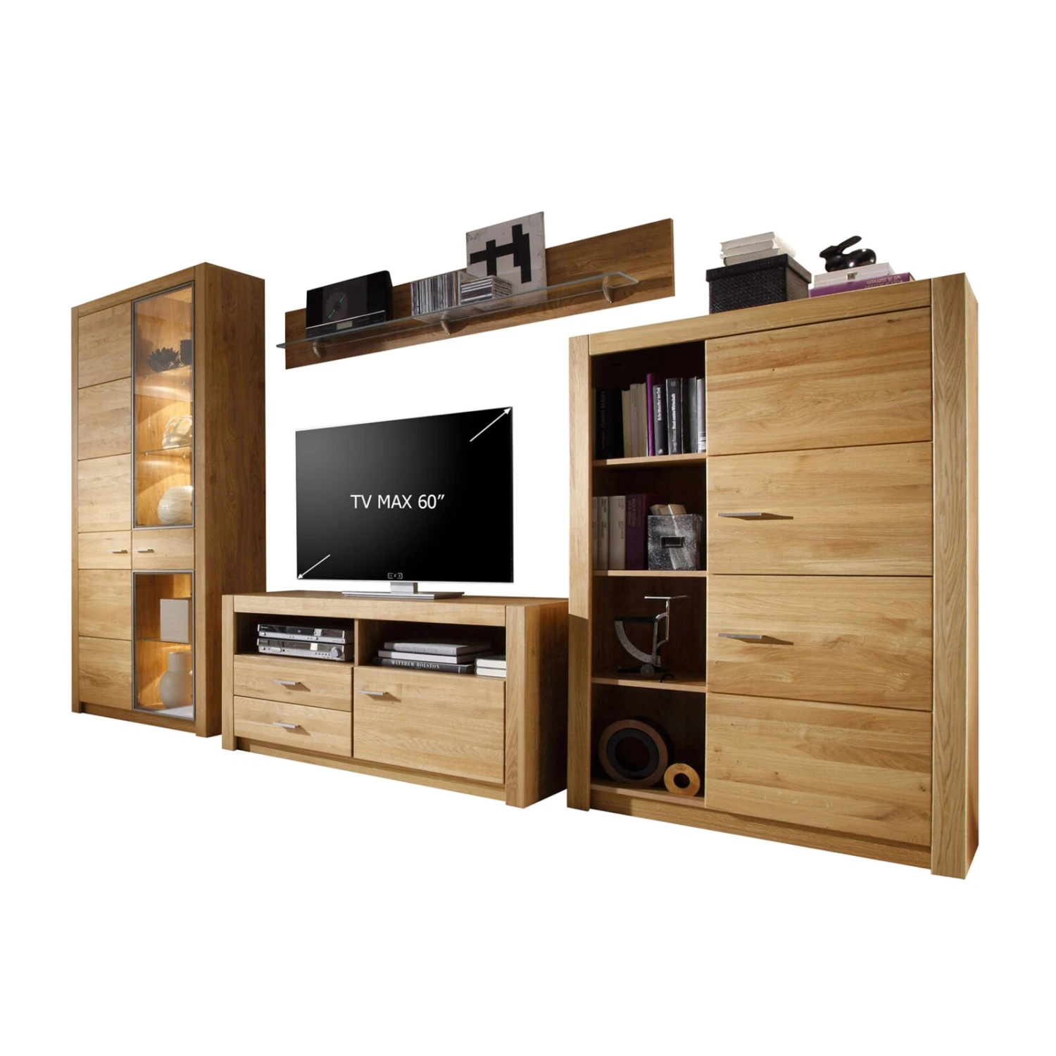 4-teilige Wohnwand HARTFORD – Wildeiche-Asteiche – teilmassiv