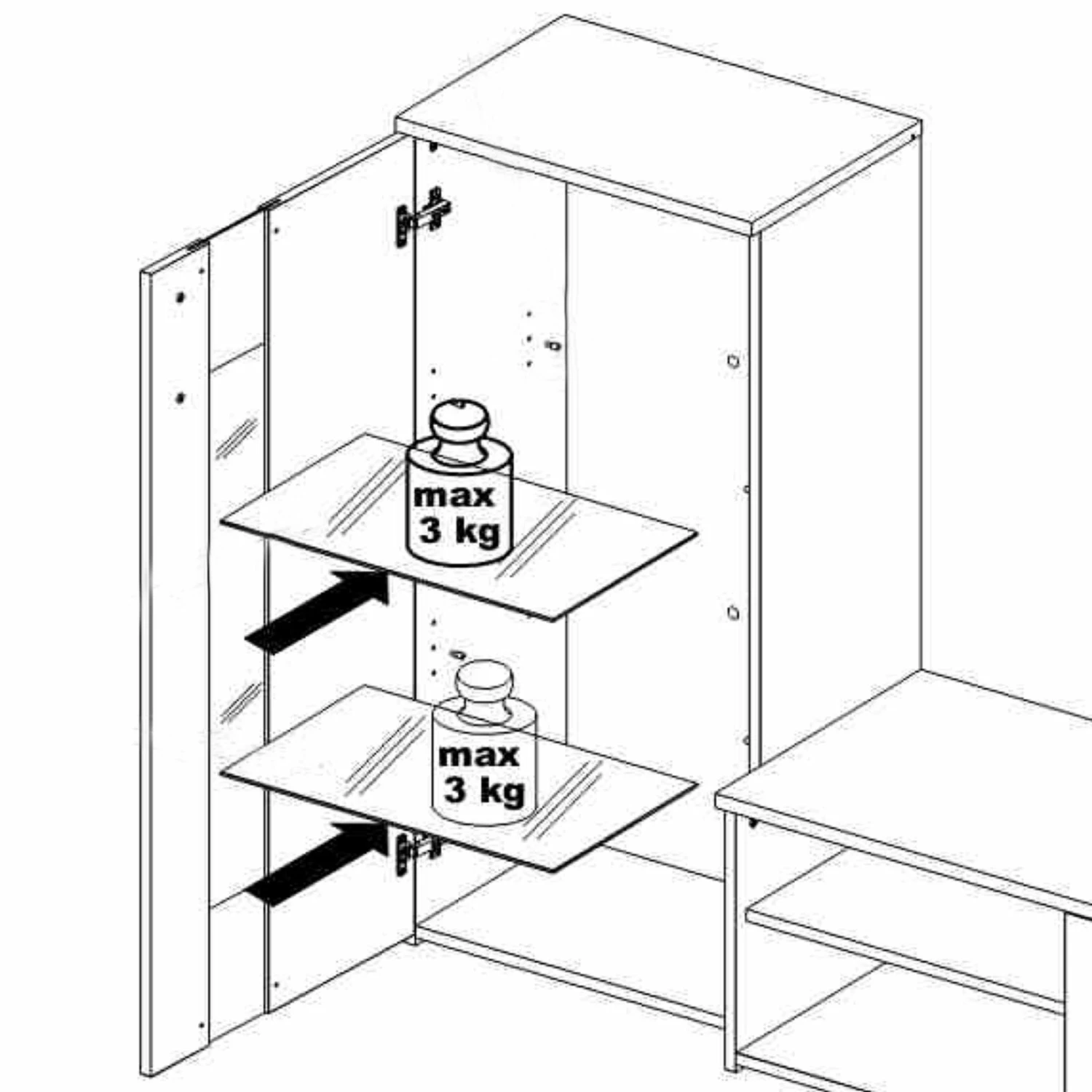 - Fach unten: BxH ca. 45,5 x 16 cm