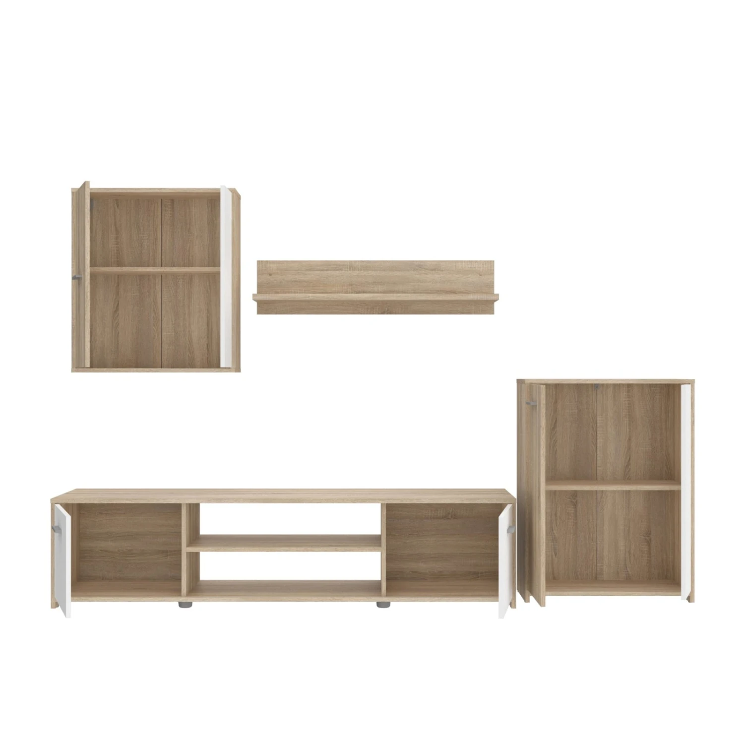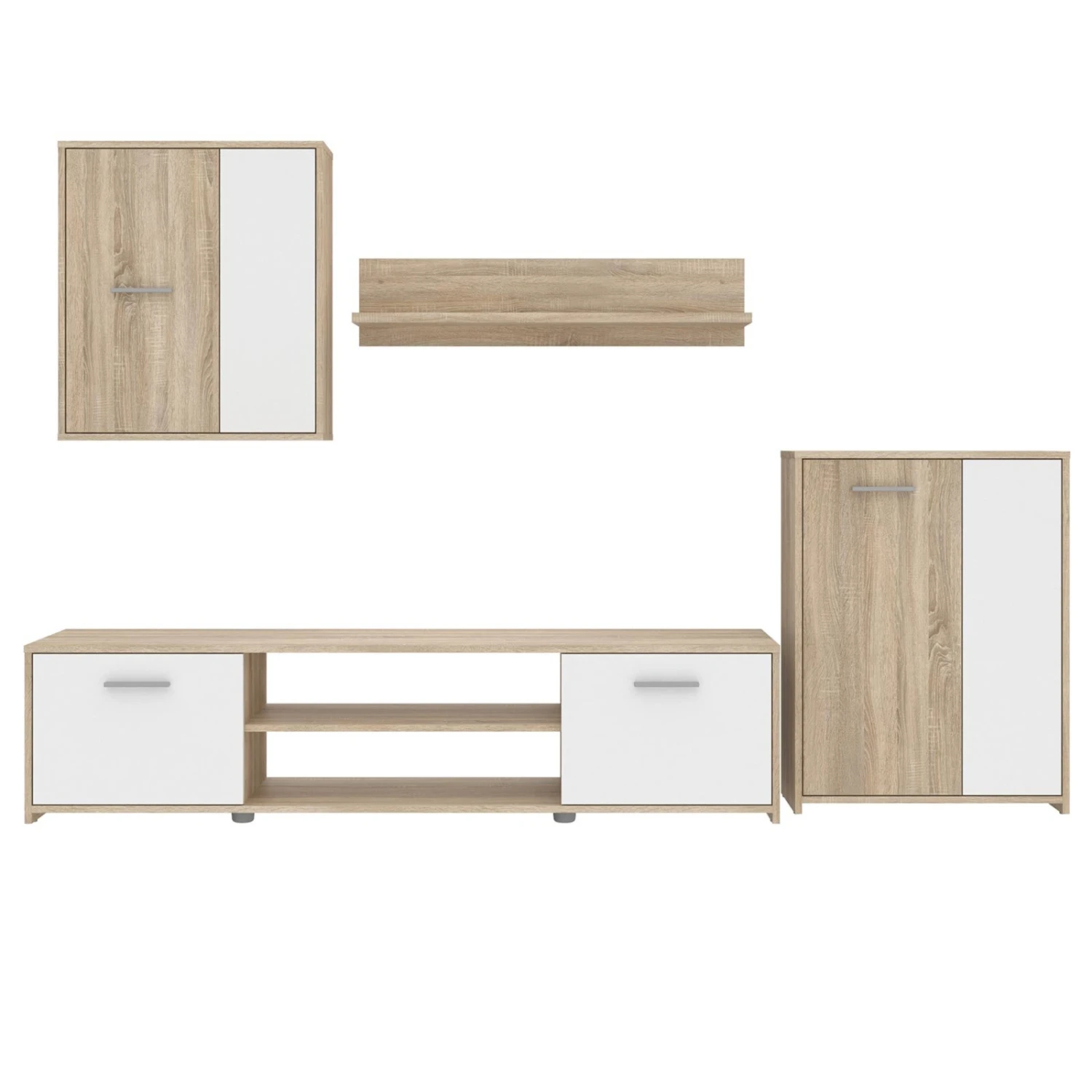 4-teilige Wohnwand – Sonoma Eiche – weiß