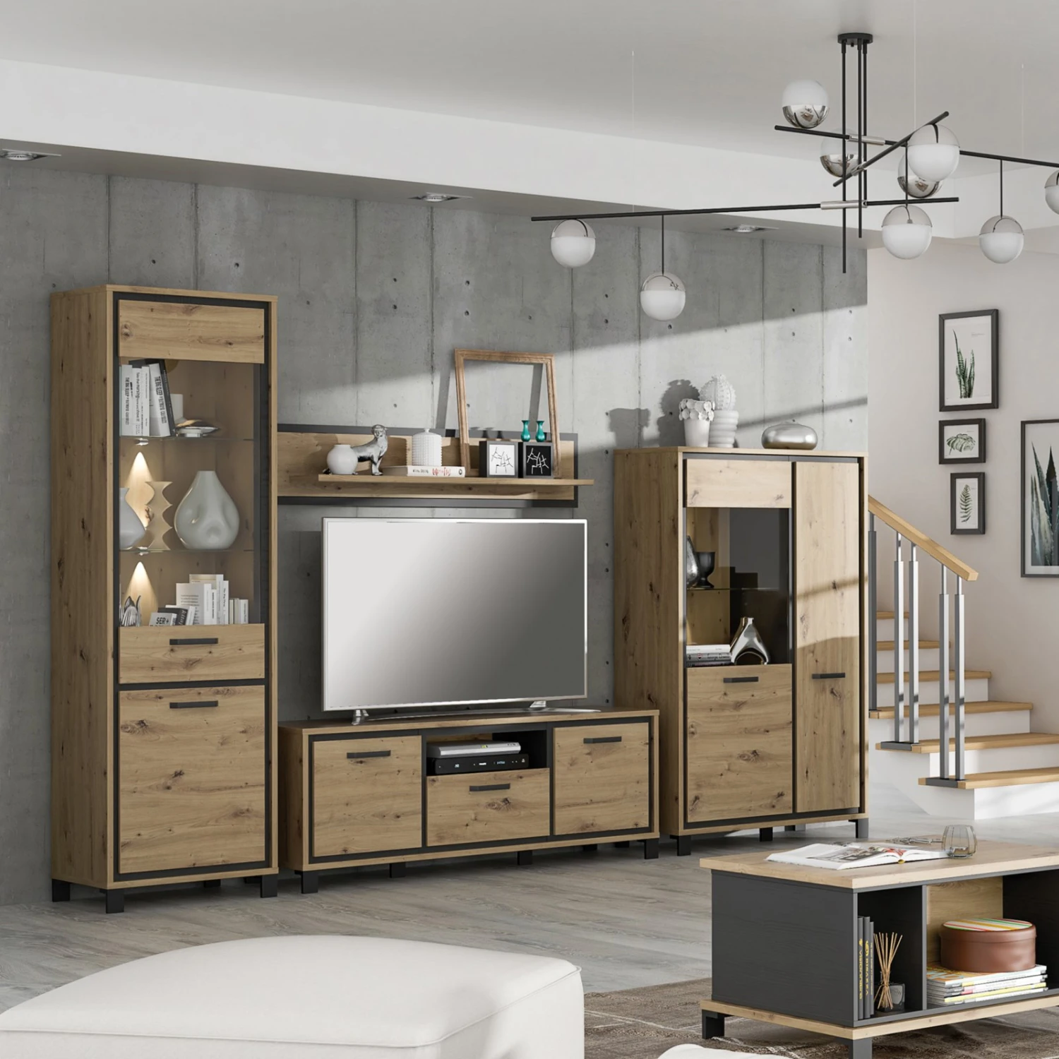 4-teiliges Wohnwand Set – Artisan Eiche – Schwarzeiche