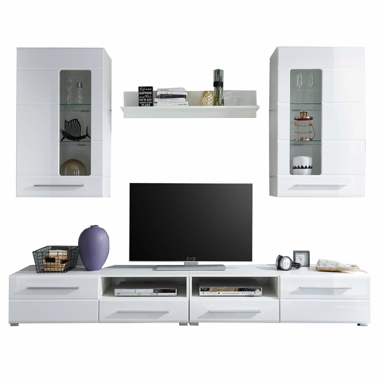 5-teilige Wohnwand – weiß – weiß Hochglanz