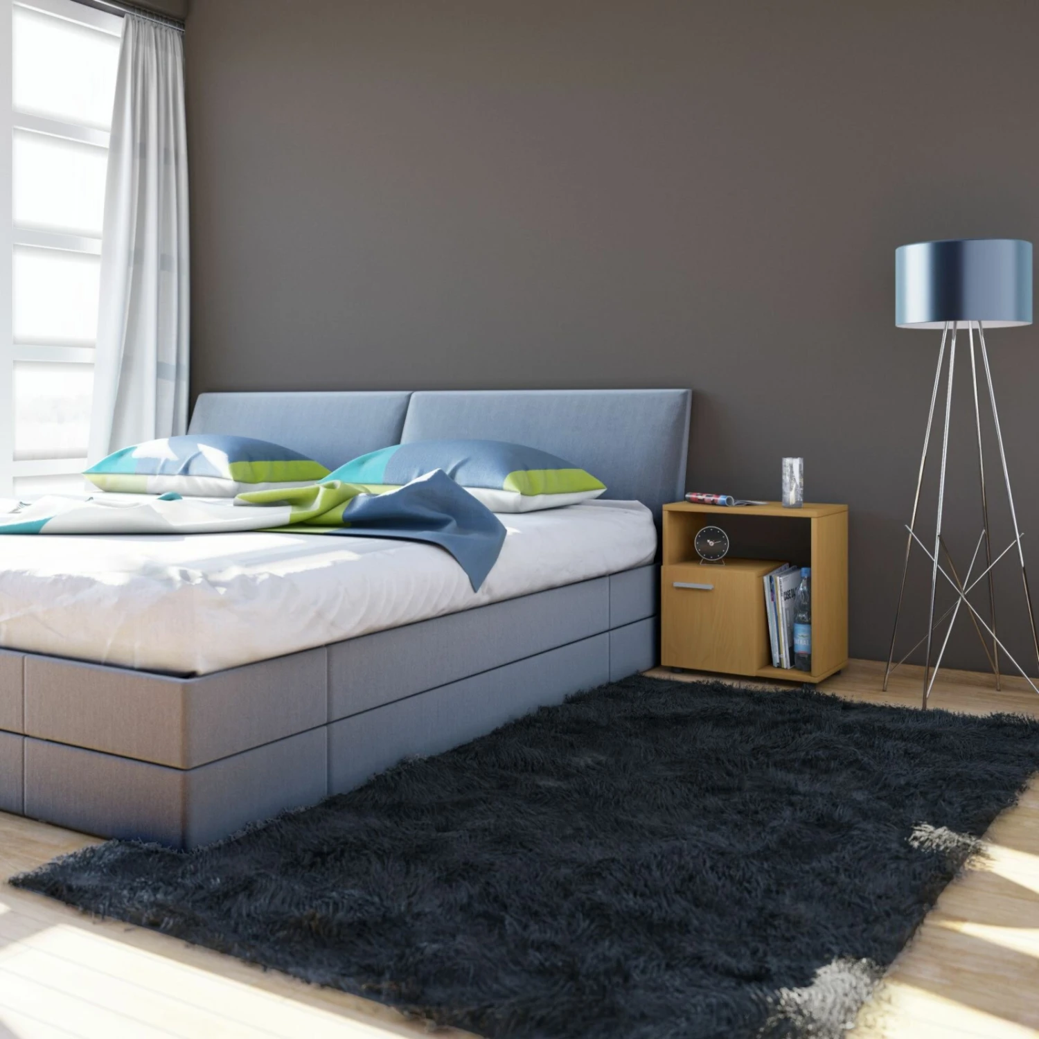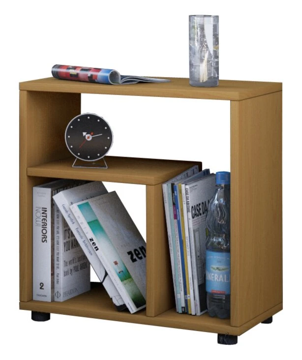 Praktischer und zeitloser Beistelltisch in Buche Nachbildung. Dieser Tisch ist genau das richtige Möbelstück, um kleinere Utensilien wie eine Fernbedienung oder eine Fernsehzeitung kurzfristig ab zu legen. Die Ablage und die zwei offenen Fächer bieten auch reichlich Platz für Dekorationen.