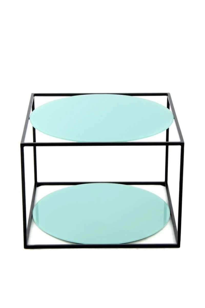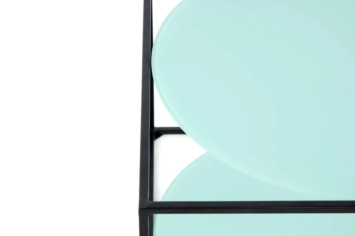 Top moderner Beistelltisch in angesagter Materialkombination. Die beiden grünen Tischplatten sind aus Glas und stehen in einem außergewöhnlichen Einklang mit dem schwarzen Gestell. Zum Hingucker wird der Tisch, da neben den Farben auch mit den Formen gespielt wird: runde Platten wurden in ein eckiges Gestell integriert. So haben Sie nicht nur einen neuen Couchtisch mit einer Höhe von ca. 36 cm, sondern ein Wohnelement, das zur Dekoration genutzt werden kann und selber Dekorationselement ist.