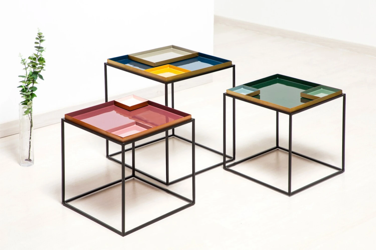 Dieser durchaus besondere Tisch ist in Design und Funktion genial und vorallem individuell. Er überzeugt durch die offene und würfelförmige Aufmachung in Verbindung mit frischen und modernen Farben. In das stabile Gestell aus Metall ist die Tischplatte mit erhöhtem Rand eingelassen. Zwei Einsätze in harmonischer Farbkombination ergänzen diese. Verwenden Sie diese als Schalen, als Eyecatcher oder stellen Sie diese ganz bei Seite. Es liegt Ihnen völlig frei.