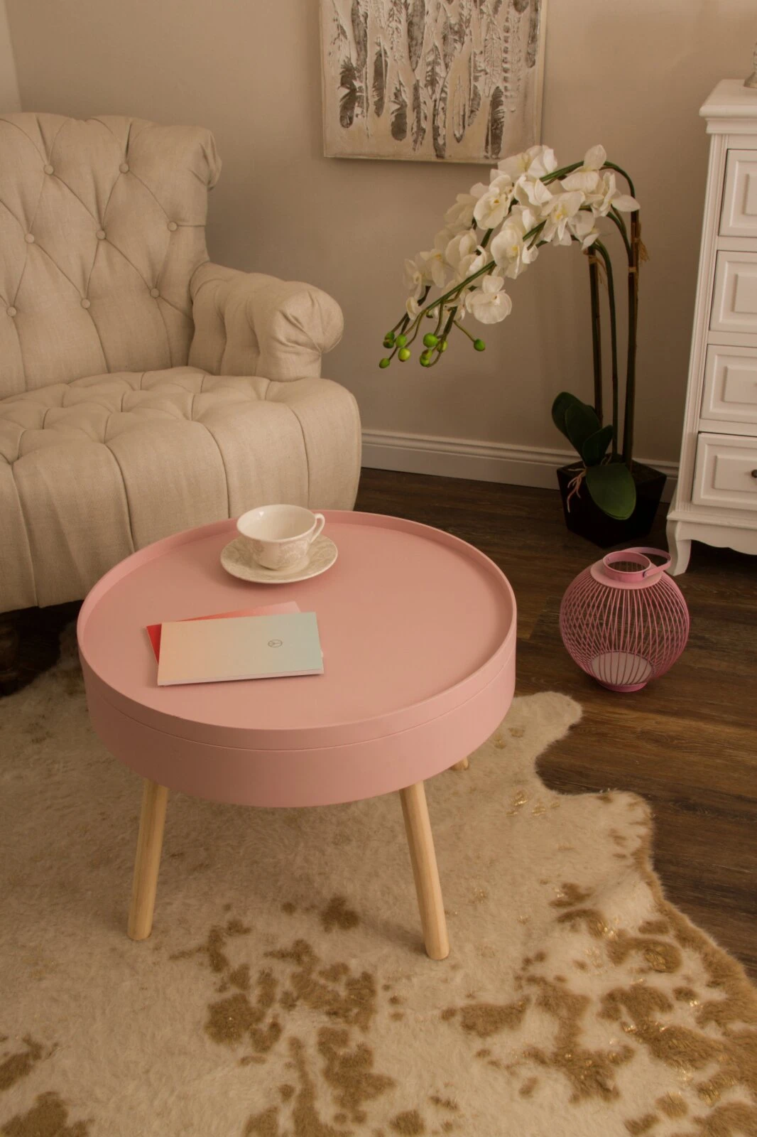 Funktionalität im hübschen Design, so kann der Beistelltisch LYNN am besten beschrieben werden. Die Beine aus Holz mit Maserung bringen Standsicherheit und skandinavischen Flair in Ihren Wohnraum. Die Tischplatte in rosa setzt dabei einen weichen Akzent. Als Clou kann die Tischplatte aufgeschoben werden, so dass sich ein kleines Staufach ergibt.