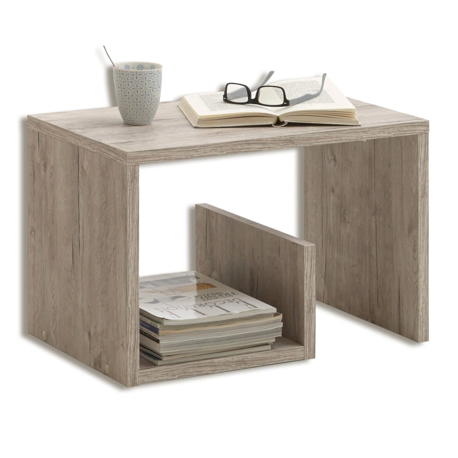 In einem topmodernen Design präsentiert sich dieser tolle Beistelltisch in einer Sandeiche Nachbildung. Dieser Tisch bietet sich perfekt an, dort kleinere Utensilien abzustellen, wie z.B. eine Fernbedienung, Zeitschriften oder ähnliches.