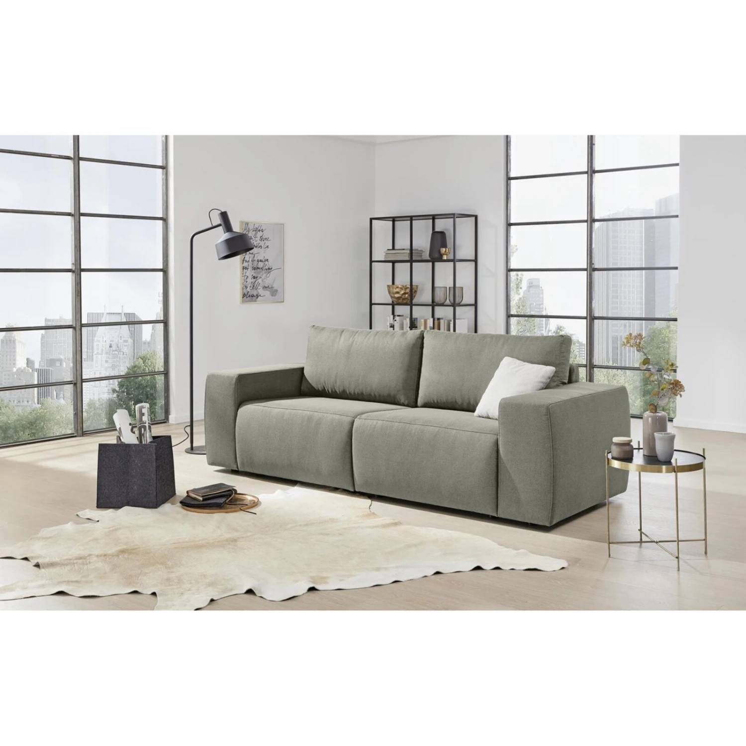 Dieses Bigsofa eignet sich ideal, um bei einem Filmabend den Tag ausklingen zu lassen. Auf der ausgiebigen Sitzfläche kann dabei schön entspannt werden. Dank des mit dem Originalstoff bezogenen Rückens, können Sie das Sofa überall im Raum platzieren.