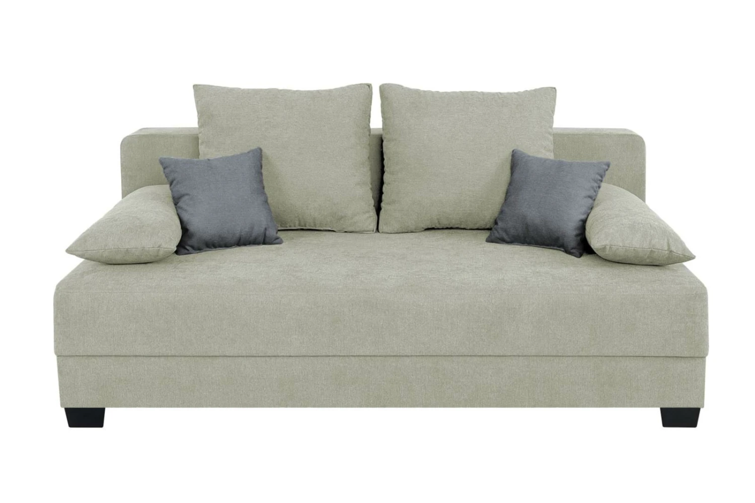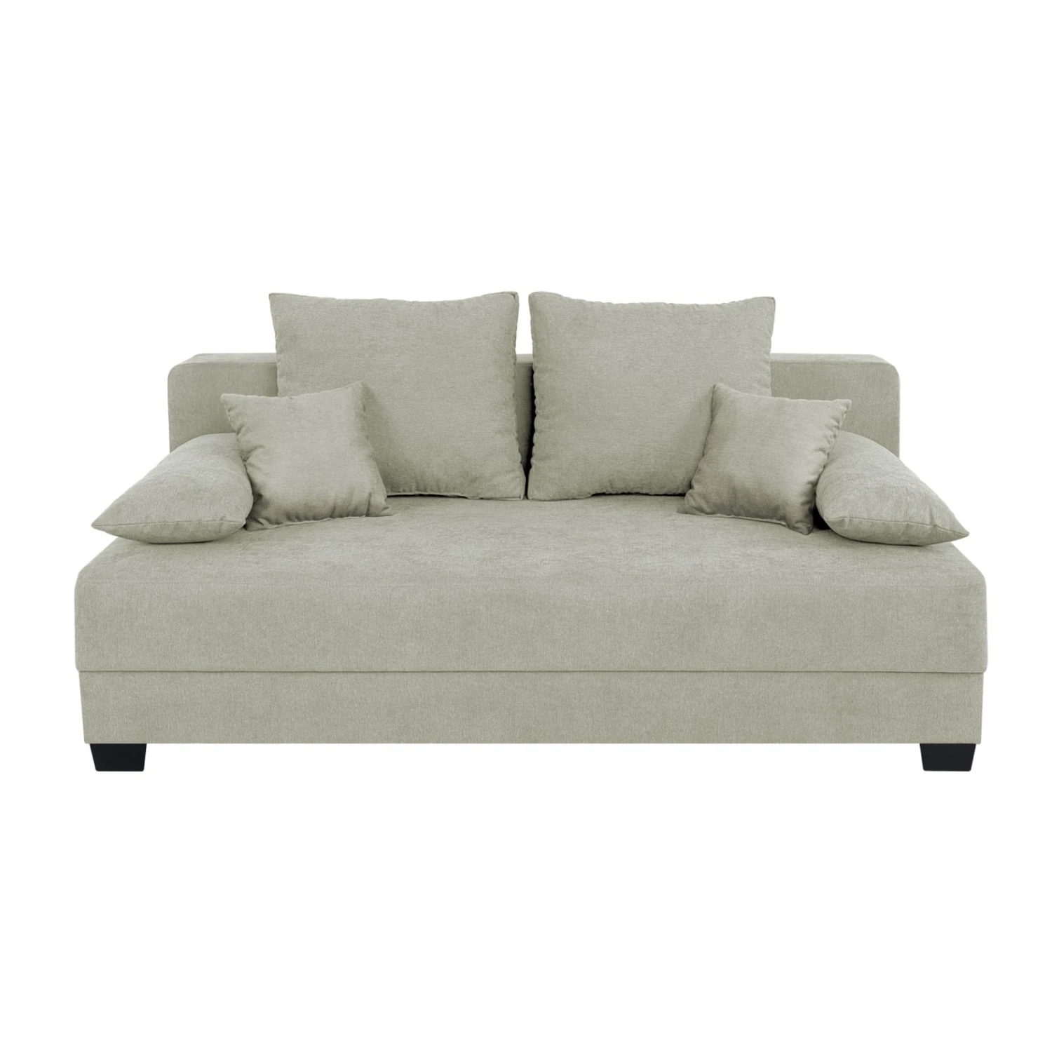 Dieses praktische und bequeme Sofa bietet angenehmen Sitzkomfort durch eine Boxspring-Polsterung. Dank dieser lässt es sich schnell und einfach in ein vollwertiges Boxspringbett klappen, was als Dauerschläfer genutzt werden kann. Die Liegefläche ist mit ca. 160 x 200 cm sehr komfortabel. Tagsüber können Sie Ihr Bettzeug im Bettkasten unter der Sitzfläche deponieren und die Sofafunktion auch Ihren Gästen zur Verfügung stellen. Insgesamt sechs Kissen ermöglichen auch dabei gemütliche Stunden. Der Rücken ist ebenfalls im gleichen Ton mit Webstoff bezogen, so dass Sie das Boxspringsofa auch mitten in Raum stellen können, wobei die Stellfläche von ca. 200 x 110 cm sich auf das zusammengeklappte Sofa bezieht. Im ausgeklappten Zustand entspricht die Stellfläche ungefähr der Liegefläche von ca. 160 x 200 cm.