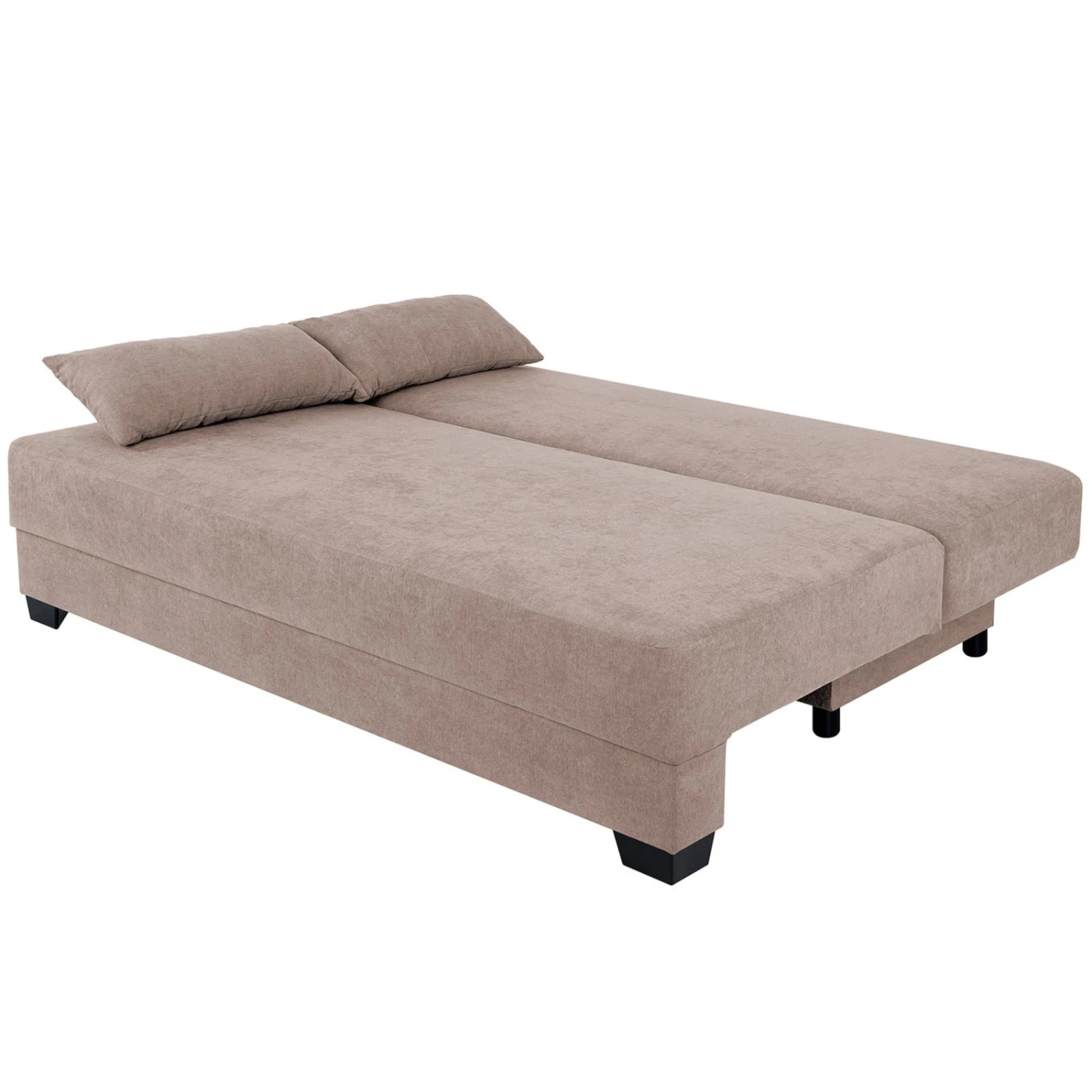 Dieses praktische und bequeme Sofa bietet angenehmen Sitzkomfort durch eine Boxspring-Polsterung. Dank dieser lässt es sich schnell und einfach in ein vollwertiges Boxspringbett klappen, was als Dauerschläfer genutzt werden kann. Die Liegefläche ist mit ca. 160 x 200 cm sehr komfortabel. Tagsüber können Sie Ihr Bettzeug im Bettkasten unter der Sitzfläche deponieren und die Sofafunktion auch Ihren Gästen zur Verfügung stellen. Insgesamt sechs Kissen ermöglichen auch dabei gemütliche Stunden, wovon zwei Zierkissen in Grau einen tollen farblichen Akzent setzen. Der Rücken ist ebenfalls mit dem Originalstoff bezogen, so dass Sie das Boxspringsofa auch mitten in den Raum stellen können. Die Stellfläche von ca. 200 x 110 cm bezieht sich auf das zusammengeklappte Sofa. Im ausgeklappten Zustand entspricht die Stellfläche ungefähr der Liegefläche von ca. 160 x 200 cm.