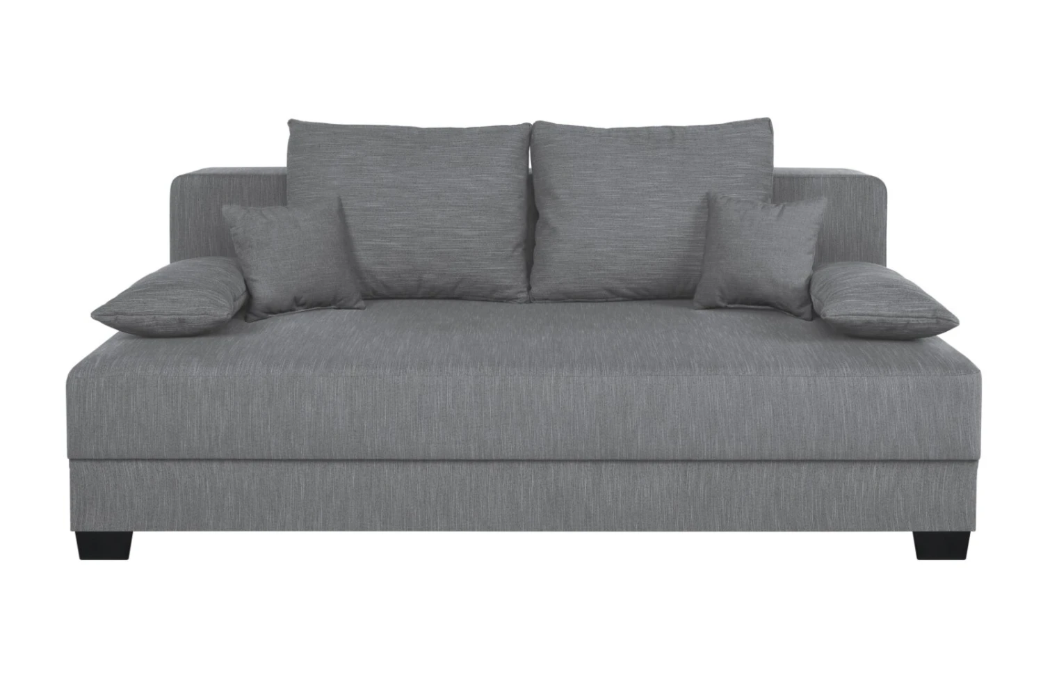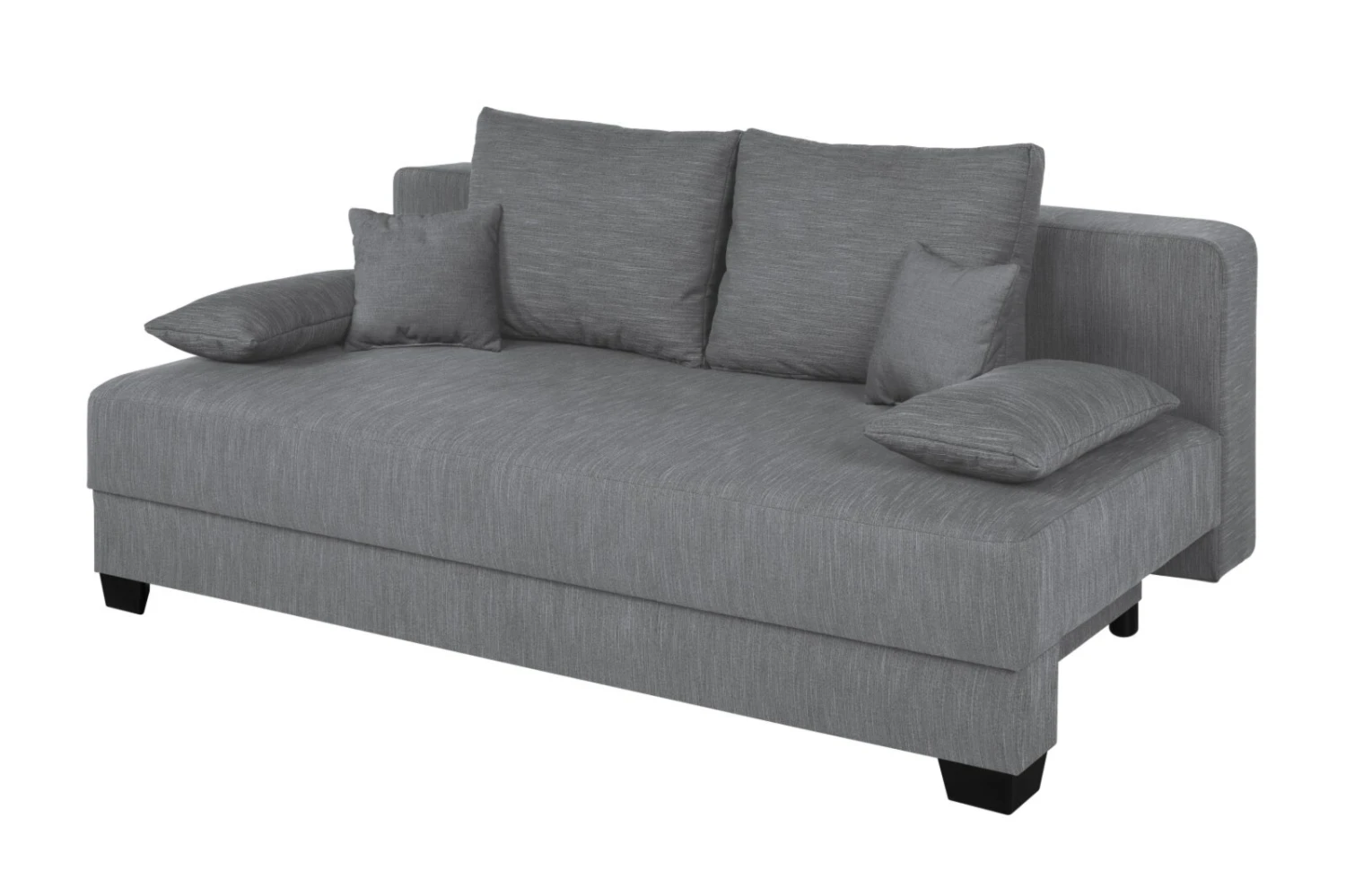 Praktisches und beqeuemes Sofa mit Dauerschläferfunktion und hochwertiger Boxspring-Polsterung. Dieses Sofa in Grau ist die ideale Lösung für Gäste, die bei Ihnen übernachten wollen, denn es ist mit einer Liegefunktion ausgestattet. Somit bietet sich eine Liegefläche von ca. 200 x 160 cm an, Gäste über Nacht einzuladen. Der Rücken ist mit dem Originalstoff bezogen, sodass Sie auch die Möglichkeit haben, dieses Sofa mittig des Raumes zu stellen. Jeweils zwei graue Rücken- und Armlehnkissen sorgen nicht nur für noch mehr Komfort, sondern machen optisch noch etwas her. Die zwei Zierkissen sorgen zusätzlich für einen dekorativen Akzent. Der geräumige Staukasten eignet sich bestens, um dort Bettdecken und Kissen zu verstauen.