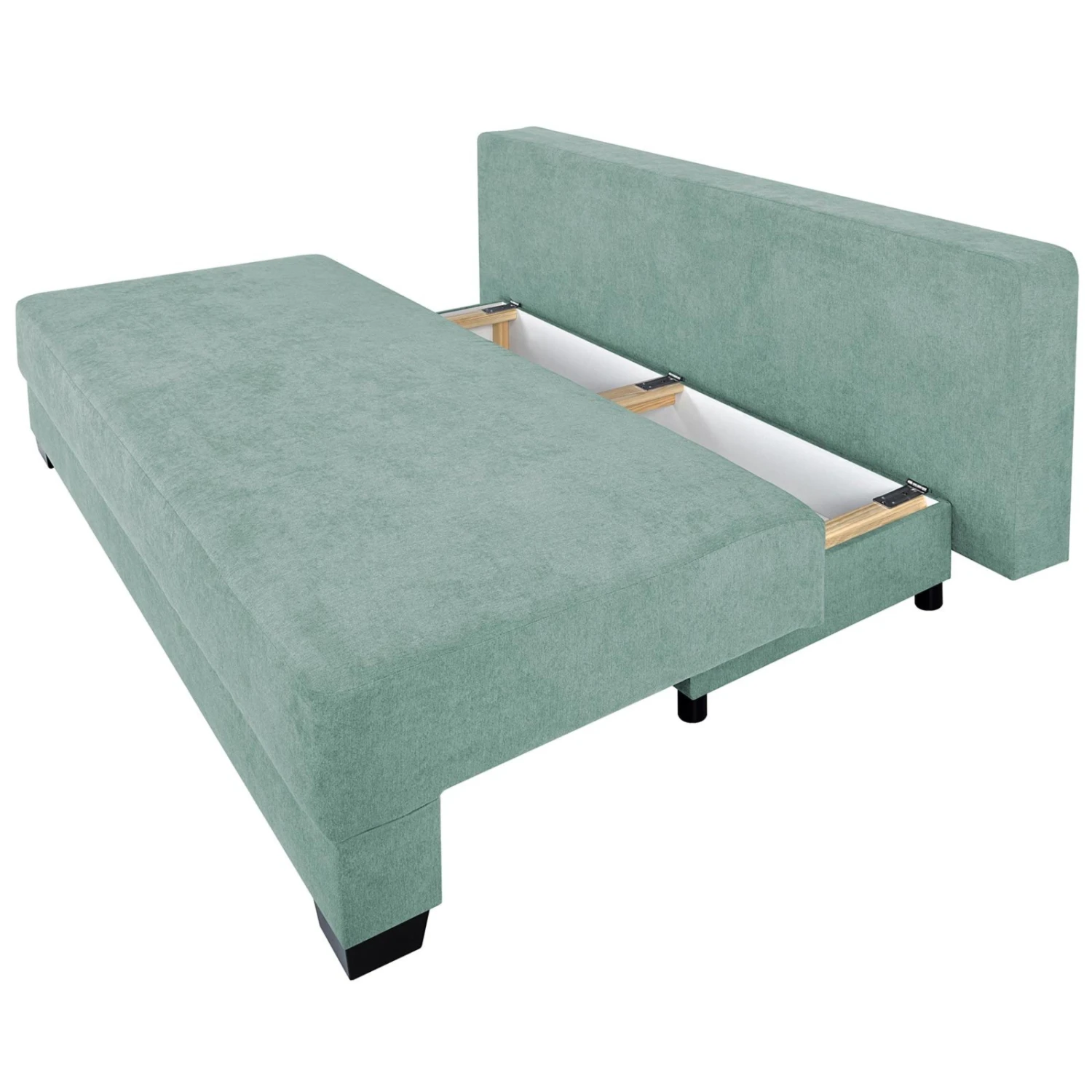 Boxspringsofa – mint-grau – Dauerschläfer mit Staukasten
