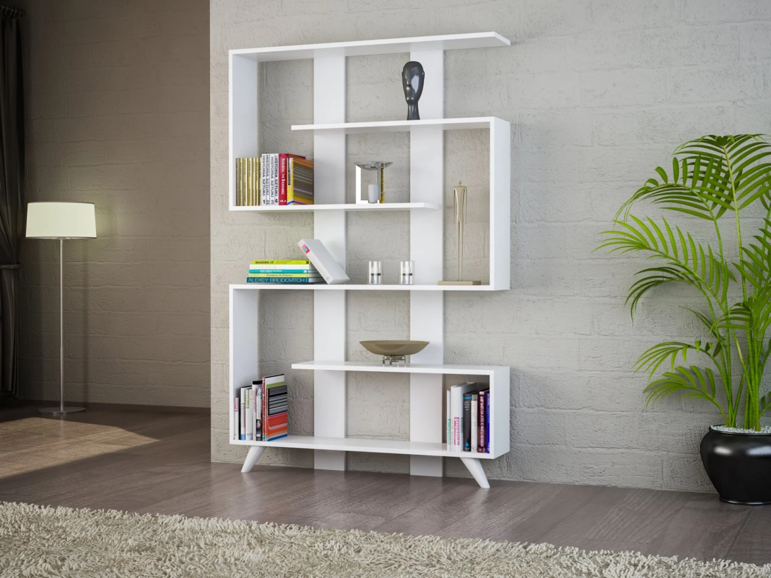 Dieses augefallenes Bücherregal in Weiß mit 4 großen Ablagefächern wird zum neuen Blickfang in Ihrem Zuhause.