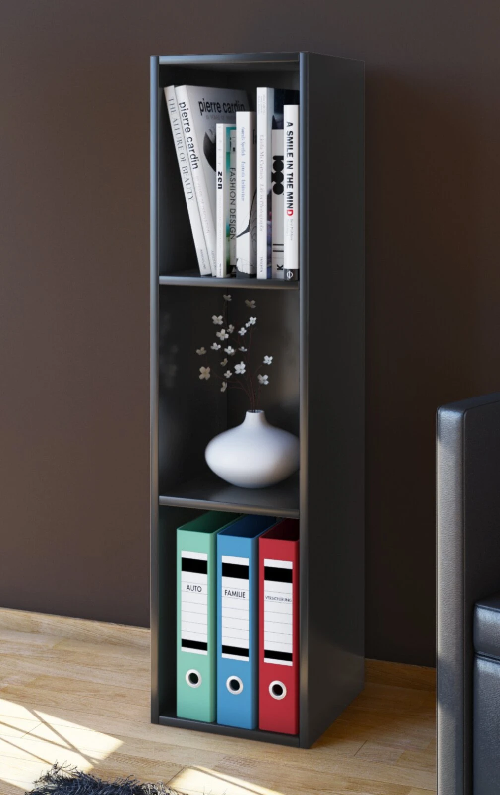 Du weißt nicht, wo du deine Sammelschätze und wichtigen Gegenstände verstauen kannst? In diesem Regal in Schwarz kannst du deine CDs und DVDs, aber auch weitere Gegenstände problemlos unterbringen.