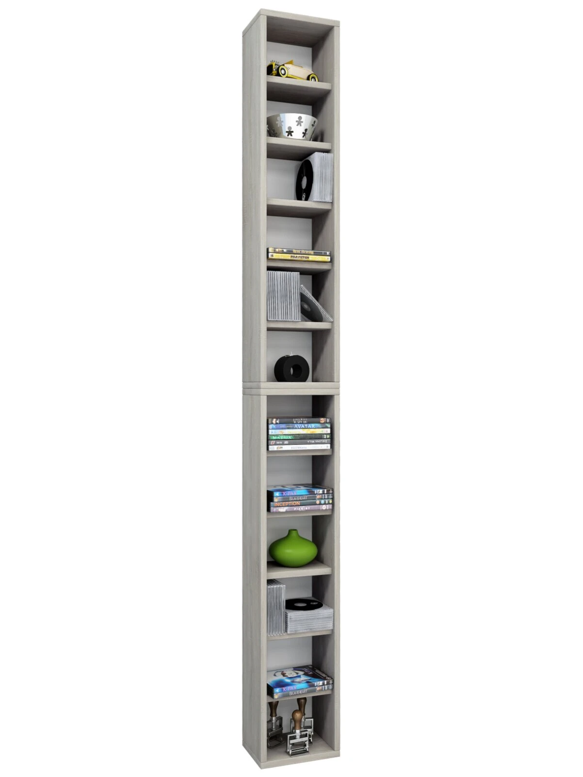 Sonoma Eichefarbenes CD Regal mit einer Höhe von 183 cm für 204 CDs, 72 DVDs oder 40 Videos. Dieses Regal bietet allein gestellt jede Menge Stauraum und lässt sich zudem beliebig erweitern. Die 10 Einlegeböden sind in der Höhe verstellbar und durch die Fixierung auf der Rückseite ist dieses Regal besonders stabil.