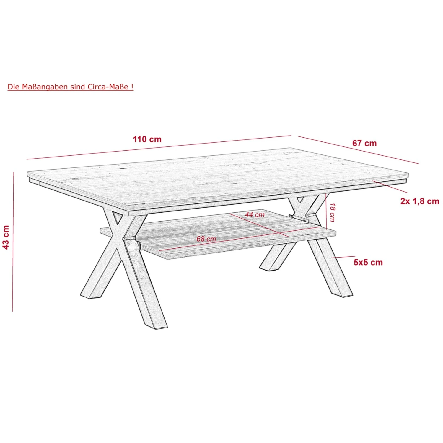 Dieser zeitlose Couchtisch in Artisan Eiche Nachbildung eignet sich hervorragend für Dein Wohnzimmer. Er ist mit einem zusätzlichen Ablageboden ausgestattet und bietet somit genug Platz für Fernbedienung, Zeitschriften und weitere Gegenstände. Besonders aufmerksamkeitserregend ist das moderne X-Gestell.