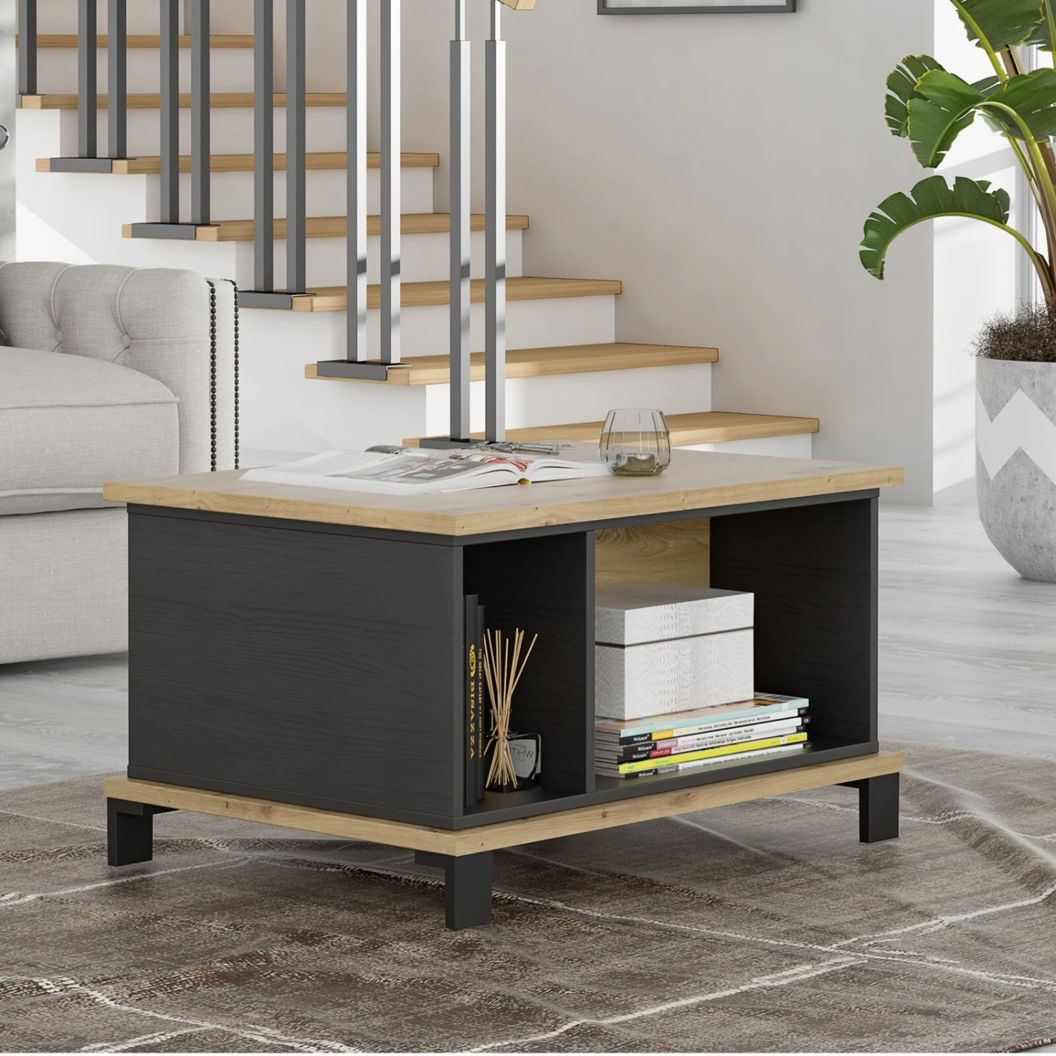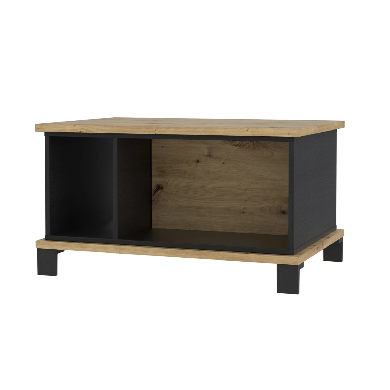 Couchtisch – Artisan Eiche-Schwarzeiche – 3 offene Fächer – 80 cm