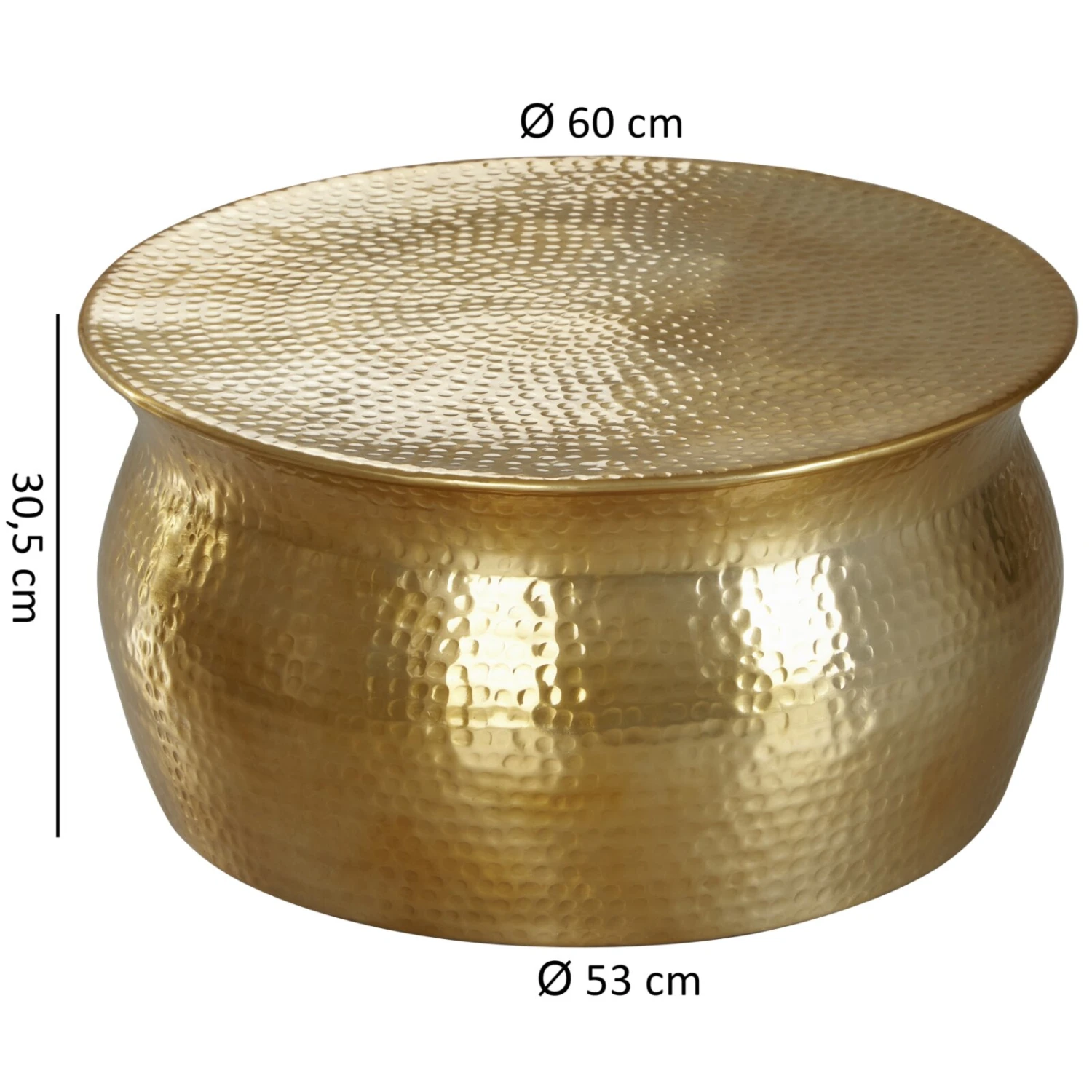 Der orientalische Stil vom Couchtisch wird sich in Ihrem Wohnbereich widerspiegeln und das absolute Highlight sein. Der goldene und aus Aluminium gefertigte Tisch bietet eine Ablagefläche von etwa 60 x 60 Zentimetern.
