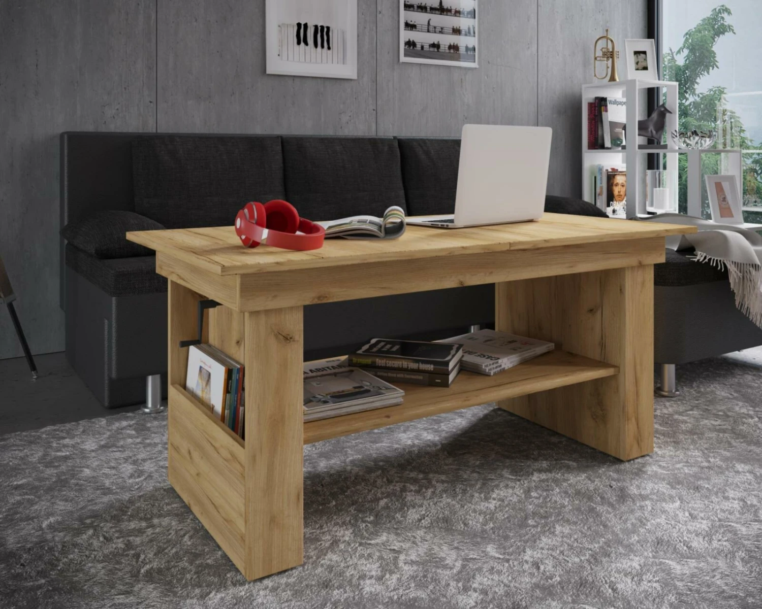 Dieser Couchtisch in der Honig-Eiche Nachbildung ist optimal für jedes Wohnzimmer. Dafür gibt es viele Gründe, wobei die Höhenverstellbarkeit und die breite Auswahl an Ablagefläche gepaart mit einem stilvollem und mordernen Design von großer Bedeutung sind. Es wird eine große Ablagefläche mit 2 Fächern geboten, was einem sehr viel Platz im Wohnzimmer ermöglicht.