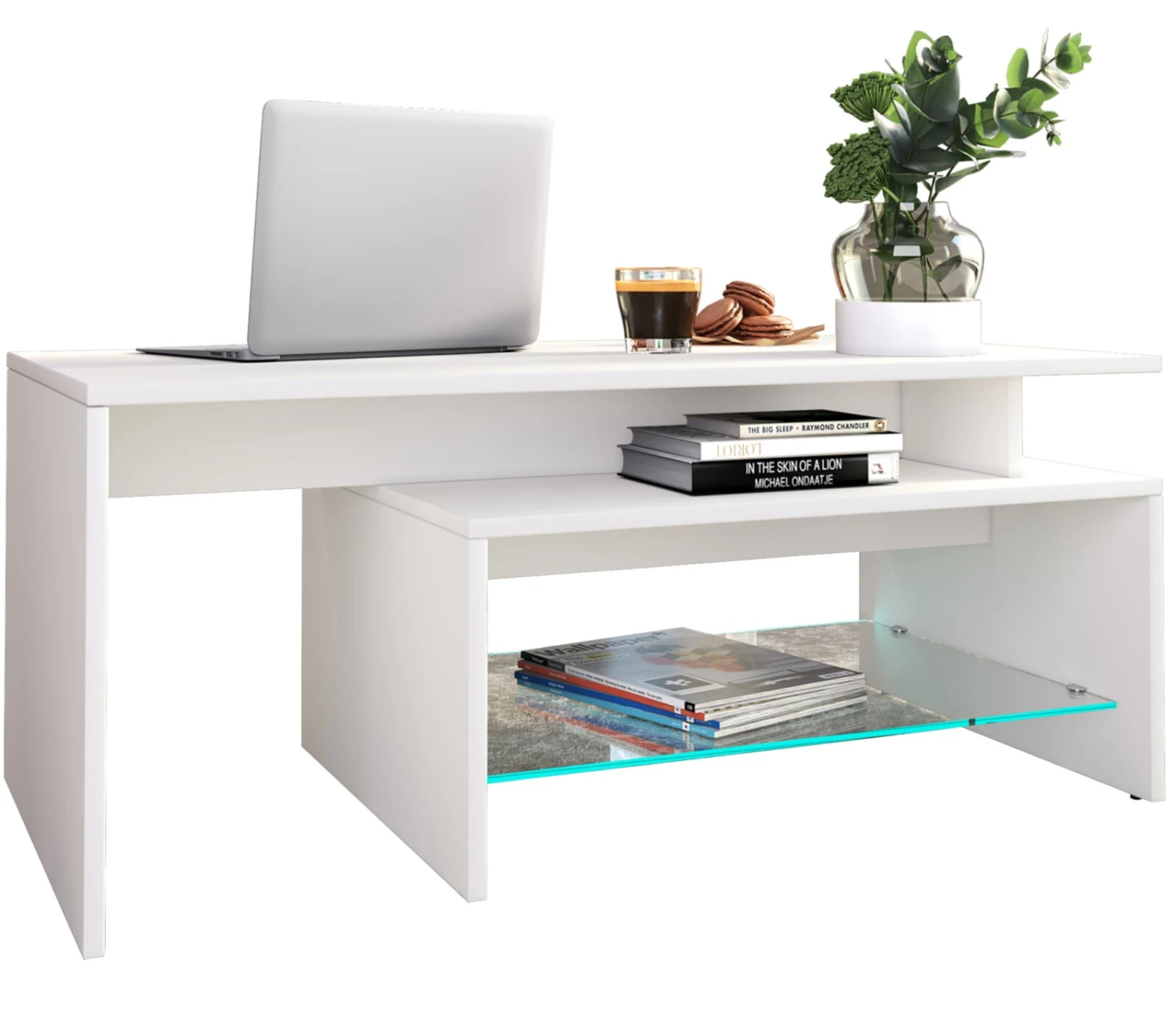 Couchtisch PILAS – weiß – Glasablage – 100 cm