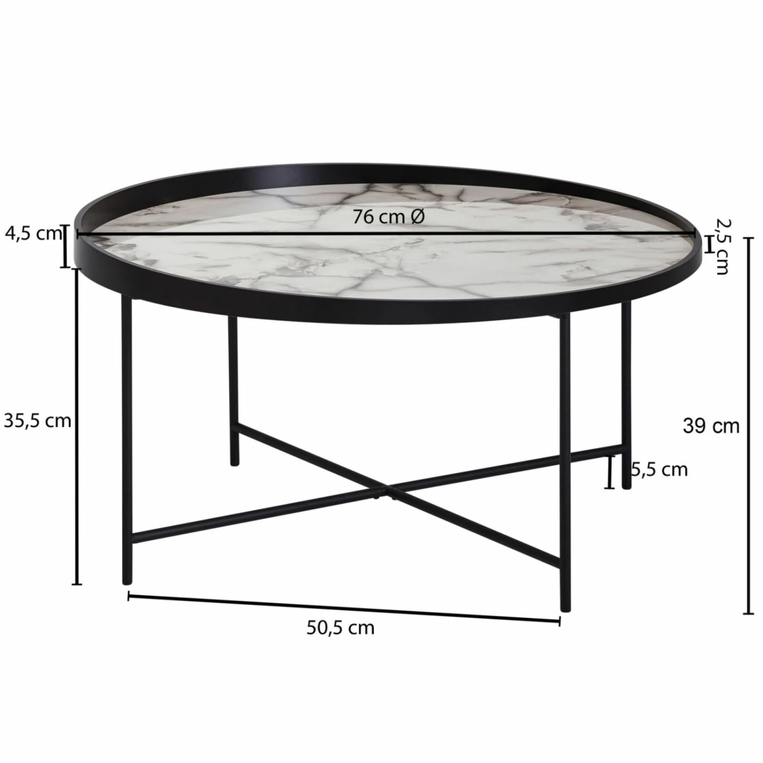 Couchtisch – schwarz-weiße Marmoroptik – 76 cm