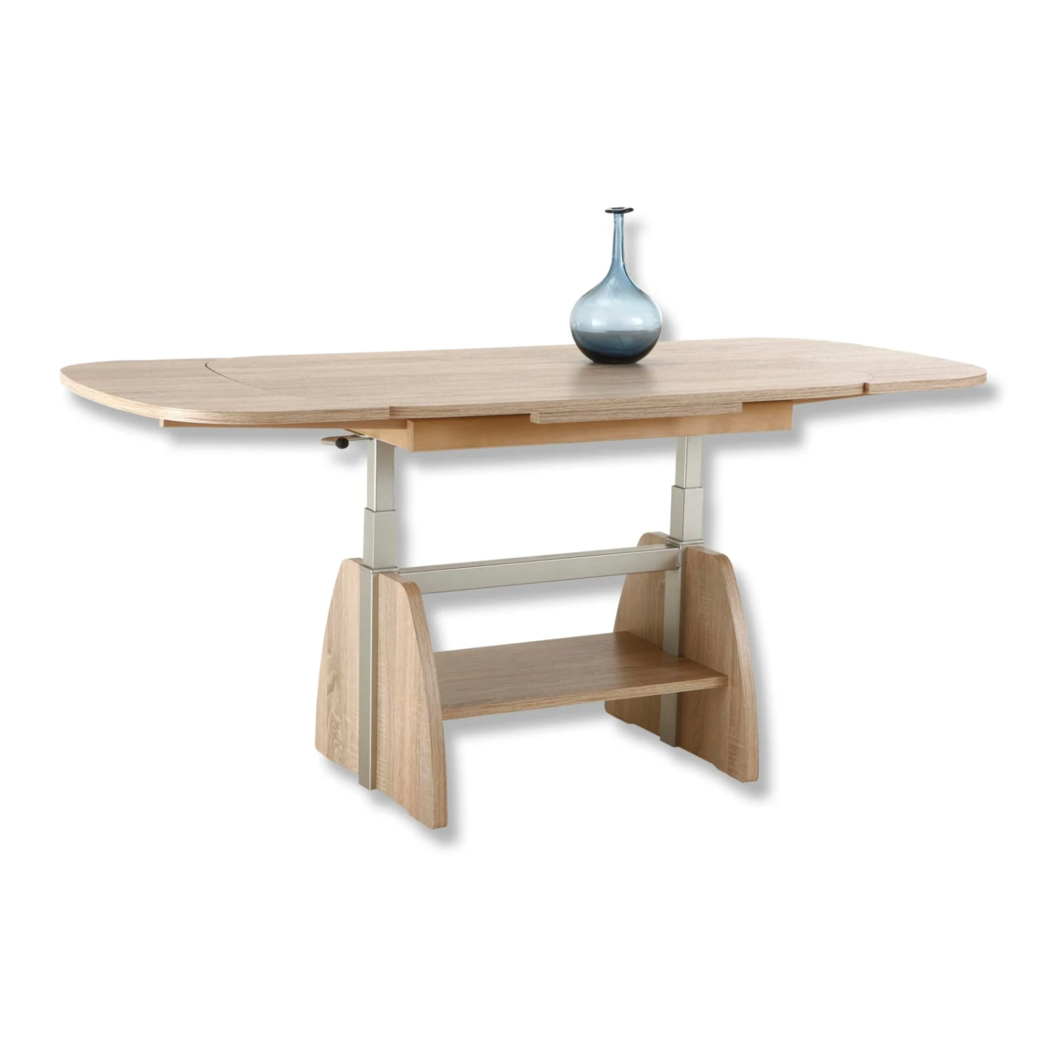 Praktischer Couchtisch mit beidseitig ausziehbarer Tischplatte und höhenverstellbarem Gestell
