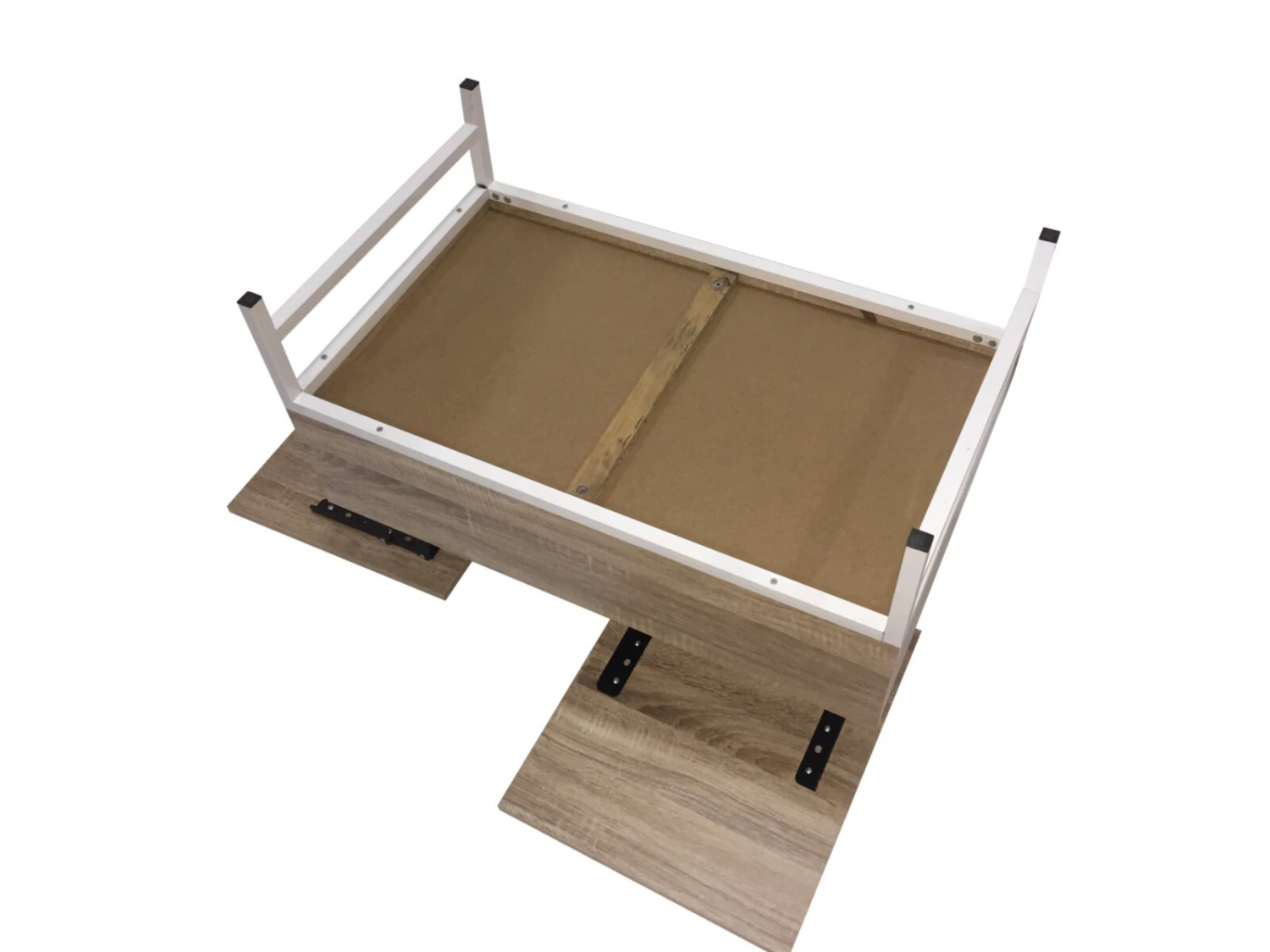 Der Couchtisch in Sonoma Eiche Nachbildung lässt sich praktischerweise in der Höhe verstellen, sodass Sie ihn als Ess- oder Arbeitsplatz nutzen können. Unter den aufklappbaren Tischplatten verbirgt sich zusätzlicher Stauraum, den Sie für Zeitschriften oder auch Fernbedienungen nutzen können. Ein robustes Gestell aus Eisen sorgt für eine stabile Konstruktion.