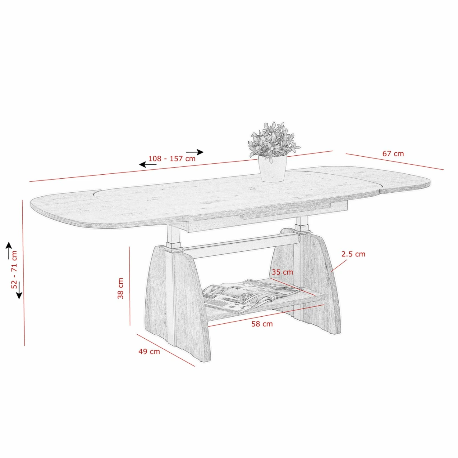 - Maße: BxHxT ca. 107-156 x 52-71 x 67 cm