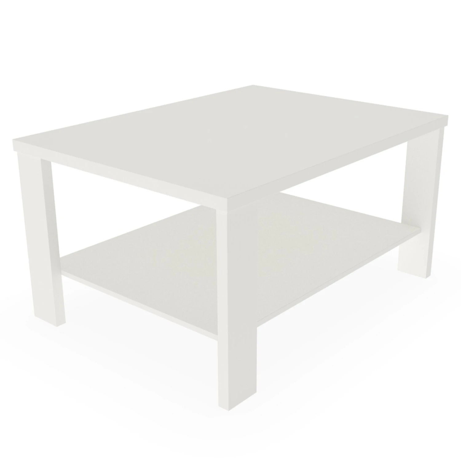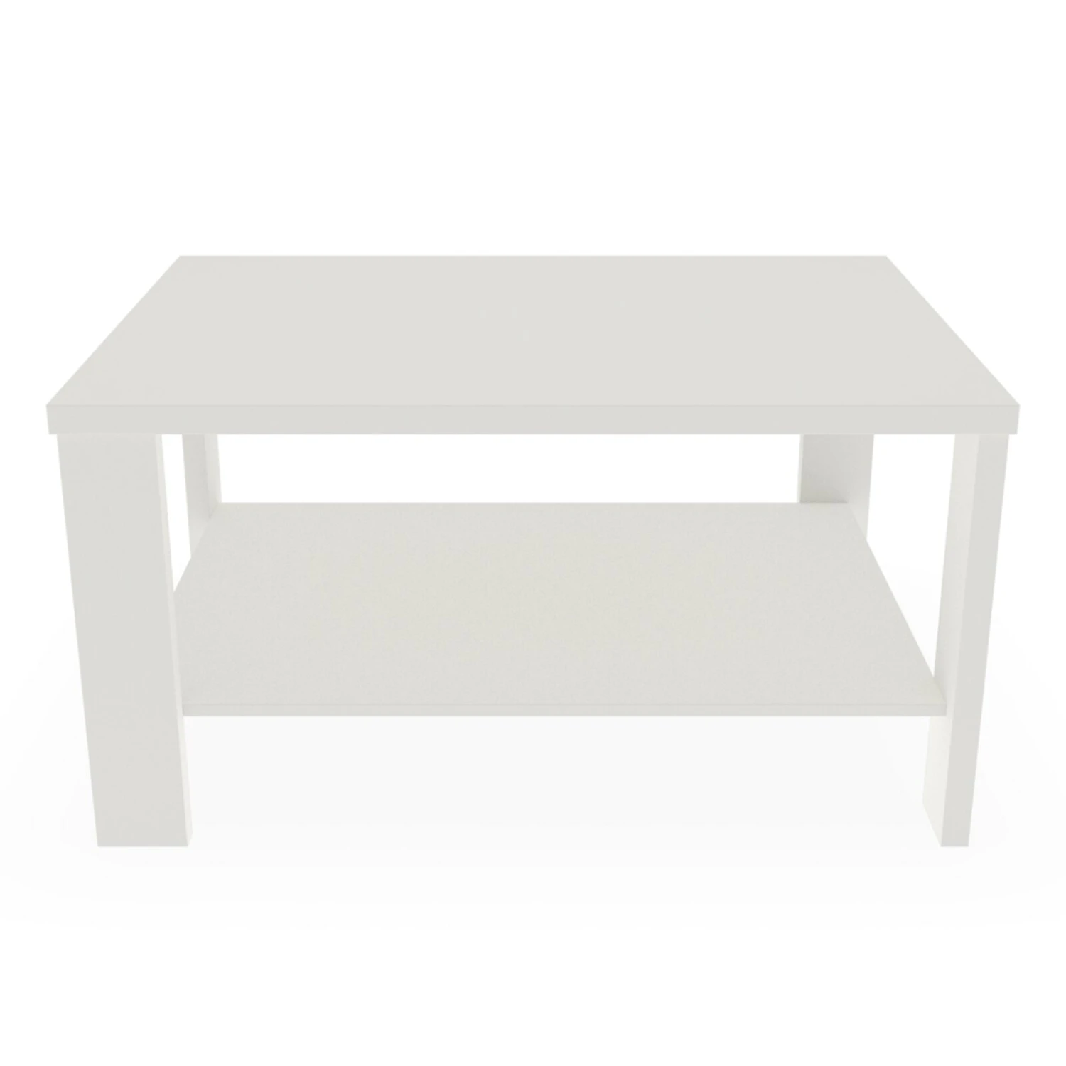 Der Couchtisch in Weiß fügt sich gut in vielen Wohnstilen ein und ist etwa 80 cm breit, 42 cm hoch und 60 cm tief.