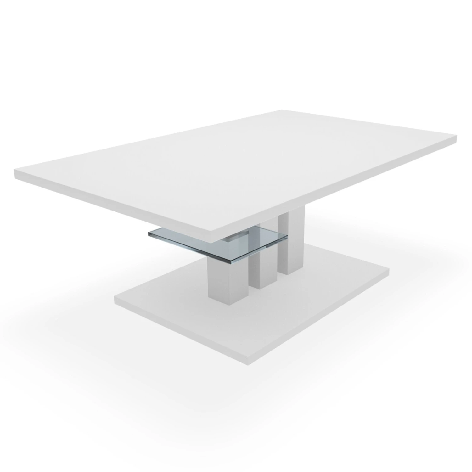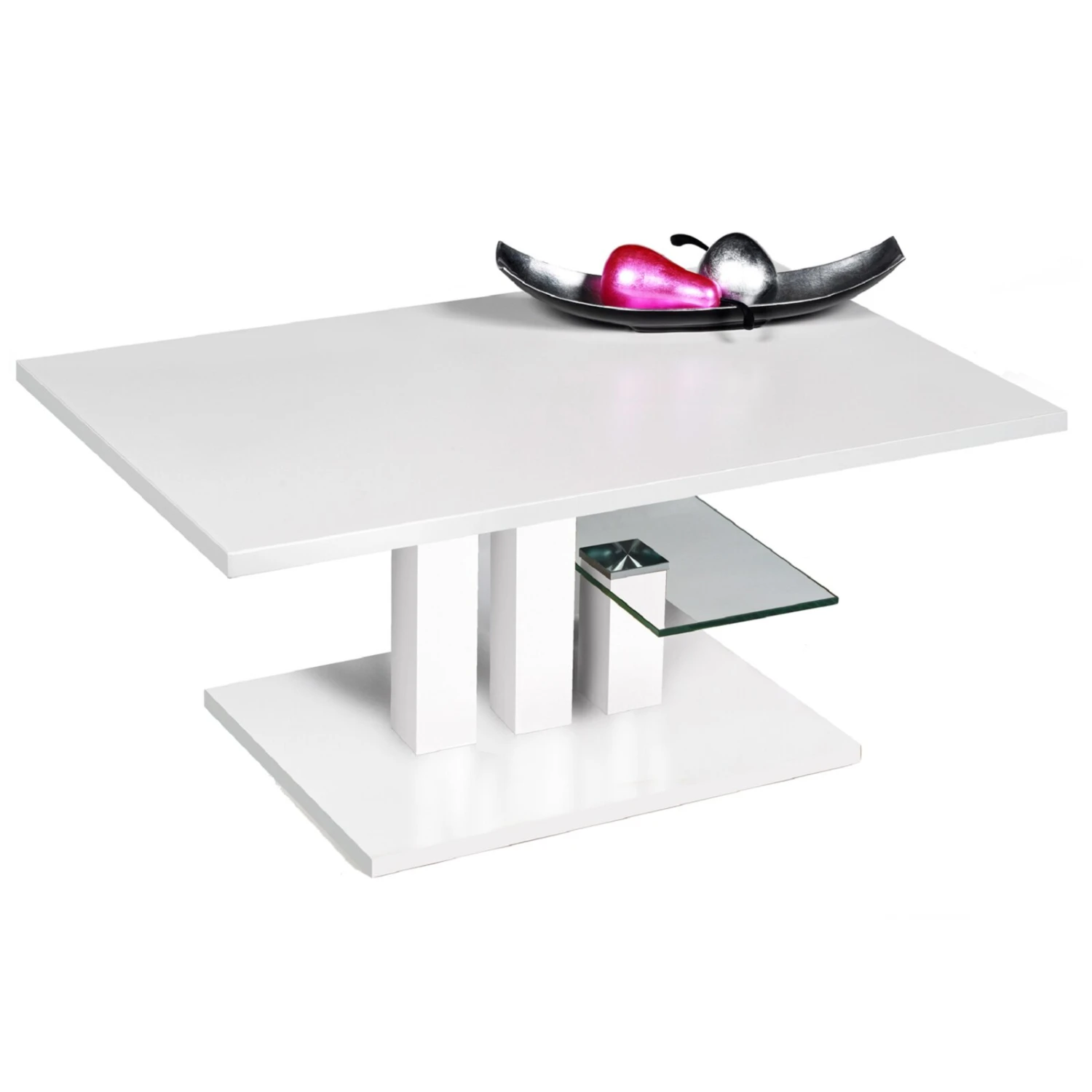 Couchtisch – weiß Hochglanz – Holz – Glasablage – 107 cm