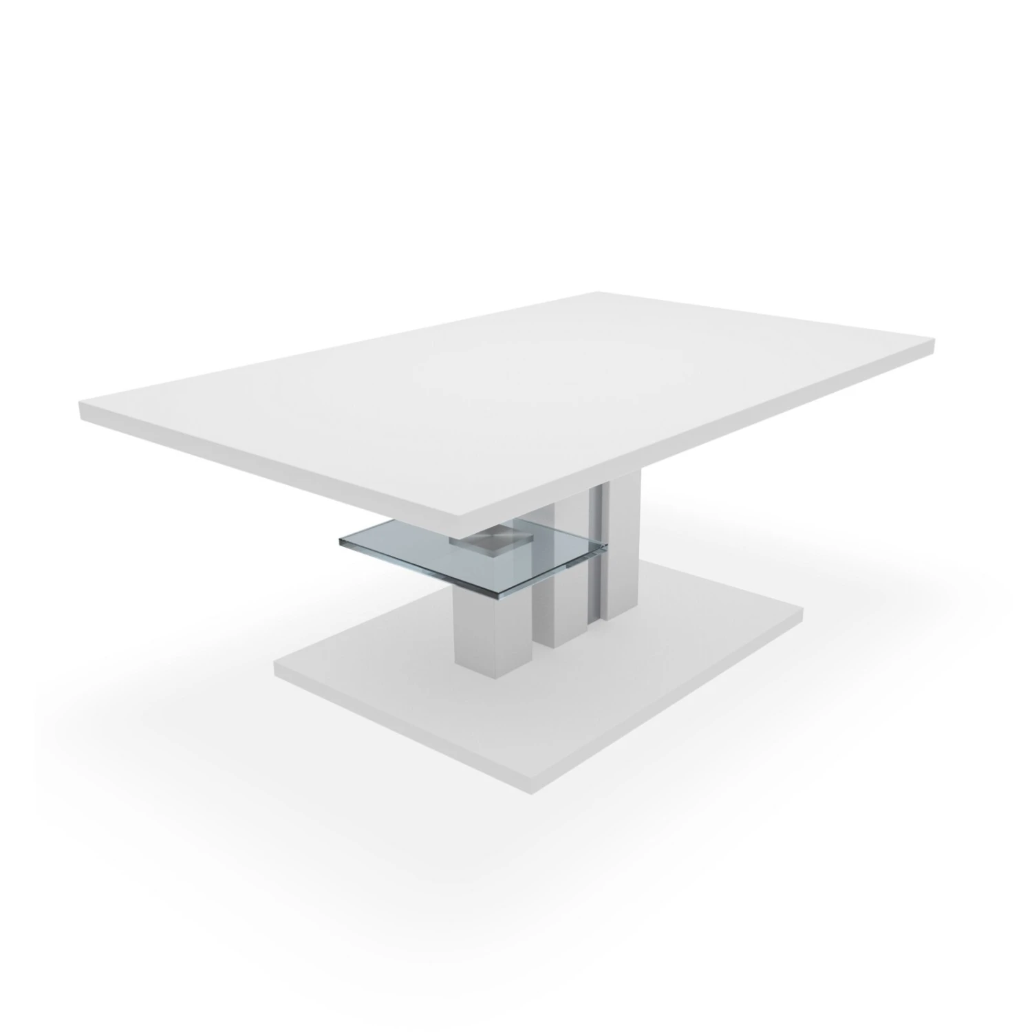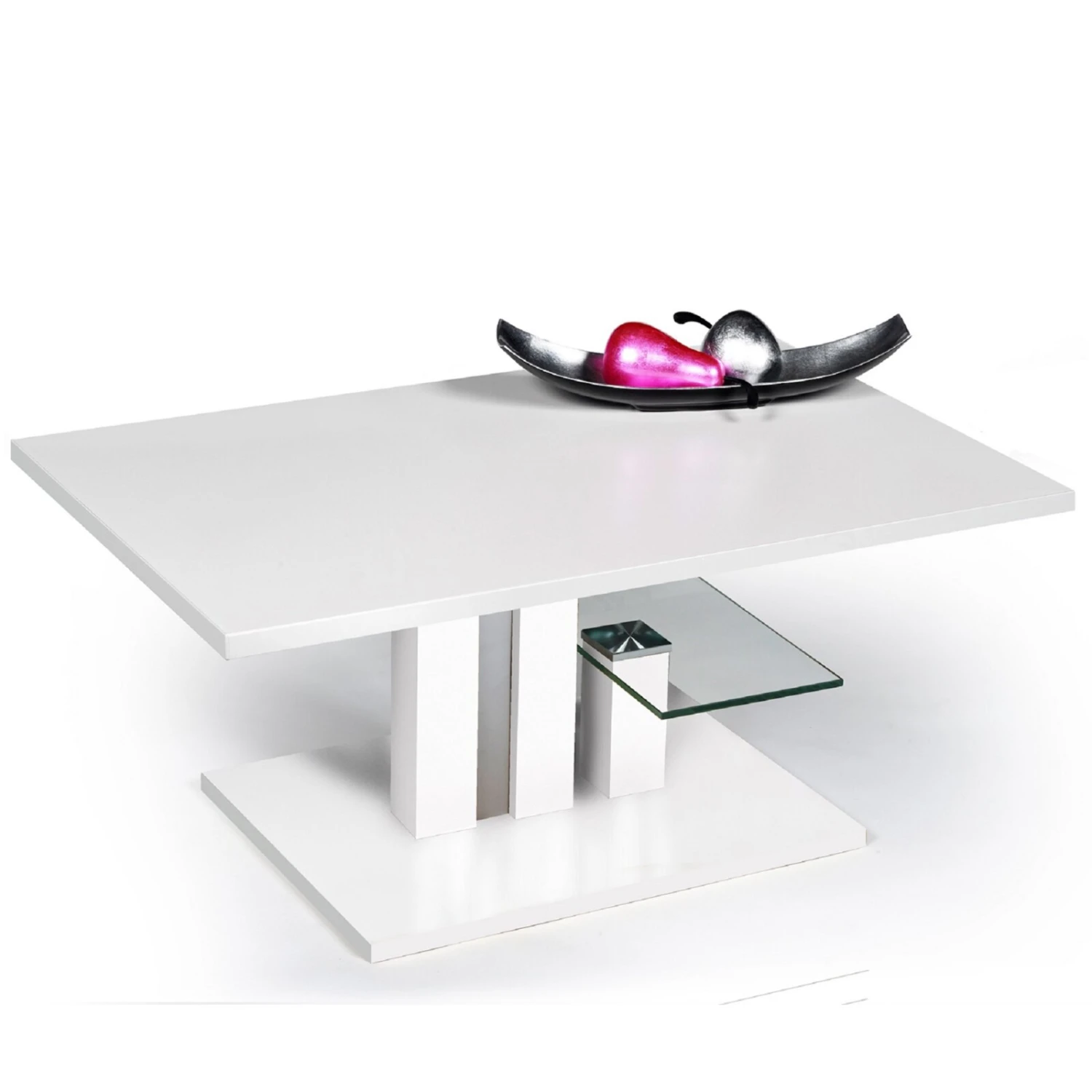 Couchtisch – weiß Hochglanz – Holz – Glasablage – 107 cm