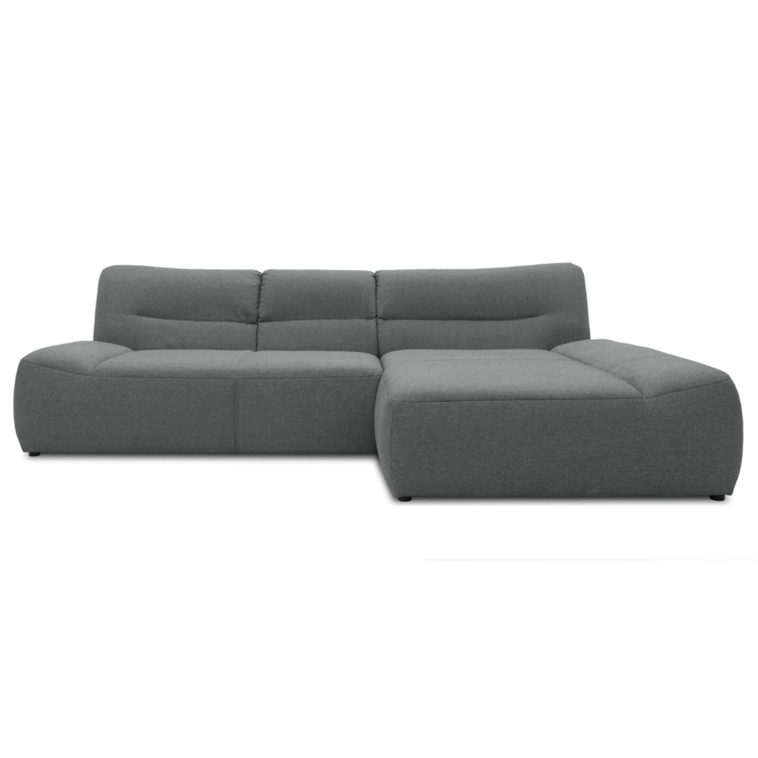 Diese gemütliche Eckgarnitur bietet genügend Platz für die ganze Familie. Dank der L-Form lässt es sich hier entweder bequem sitzen oder entspannt liegen. Moderner Webstoff rundet die komfortable Sitzpolsterung aus Polyätherschaum ab. Für die nötige Stabilität sorgen stabile Wellenfedern.