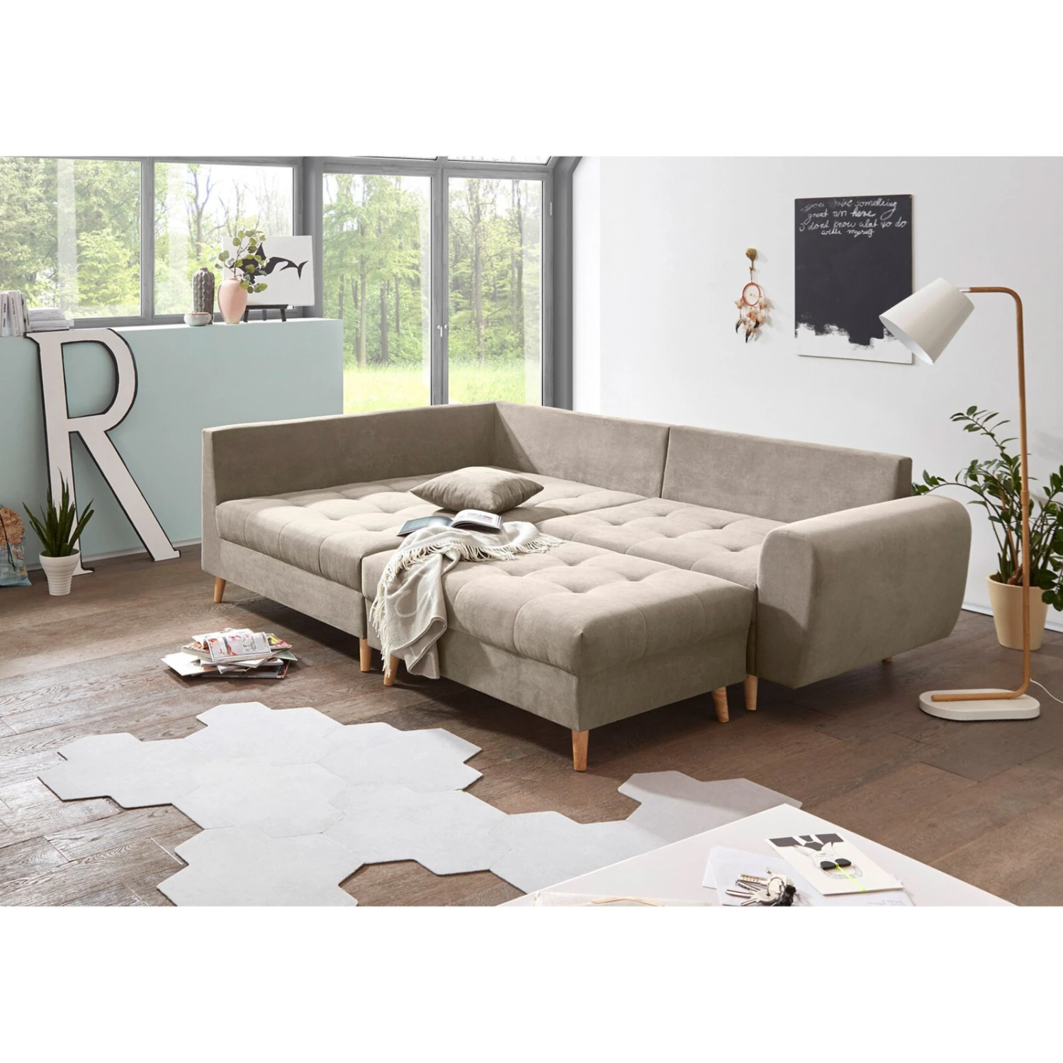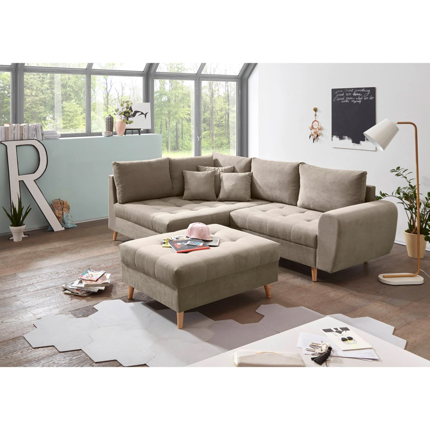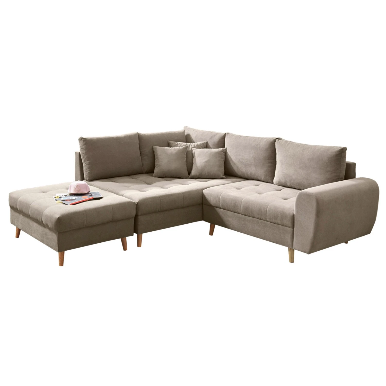 Eckgarnitur – sand – Recamiere links – mit Hocker