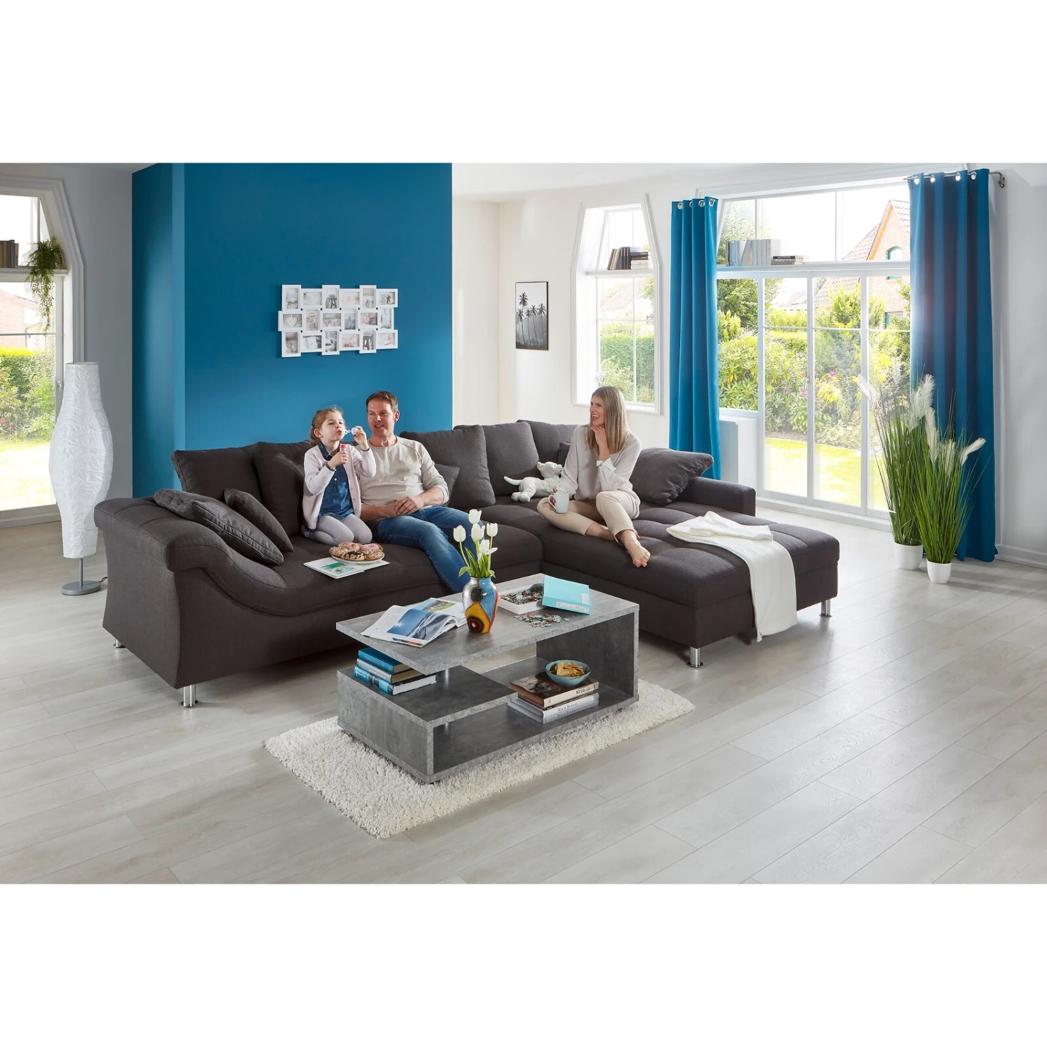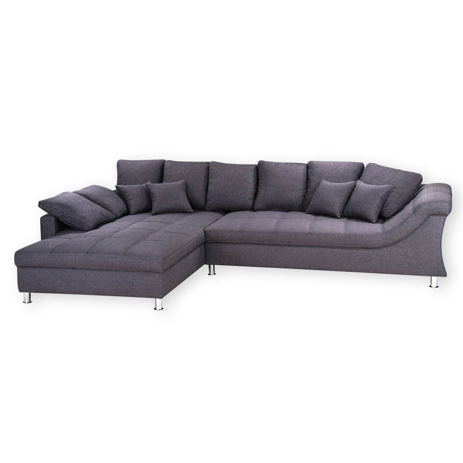 Egal ob Sie einfach nur entspannen, fernsehen oder gemütlich mit Freunden und Familie zusammensitzen möchten – nehmen Sie Platz auf dem fabelhaften Ecksofa. Für angenehmen Sitzkomfort sorgen neben dem umfangreichen Kissensatz eine Polsterung aus Polyätherschaum und die Nosagunterfederung. Besonders dekorativ ist die handwerklich gearbeitete Steppung auf der Sitzfläche. Stimmig abgerundet wird das moderne Design des anthrazitfarbenen Sofas durch die runden, verchromten Füße. So wird diese Couch zum gemütlichen Mittelpunkt Ihres Wohnzimmers.