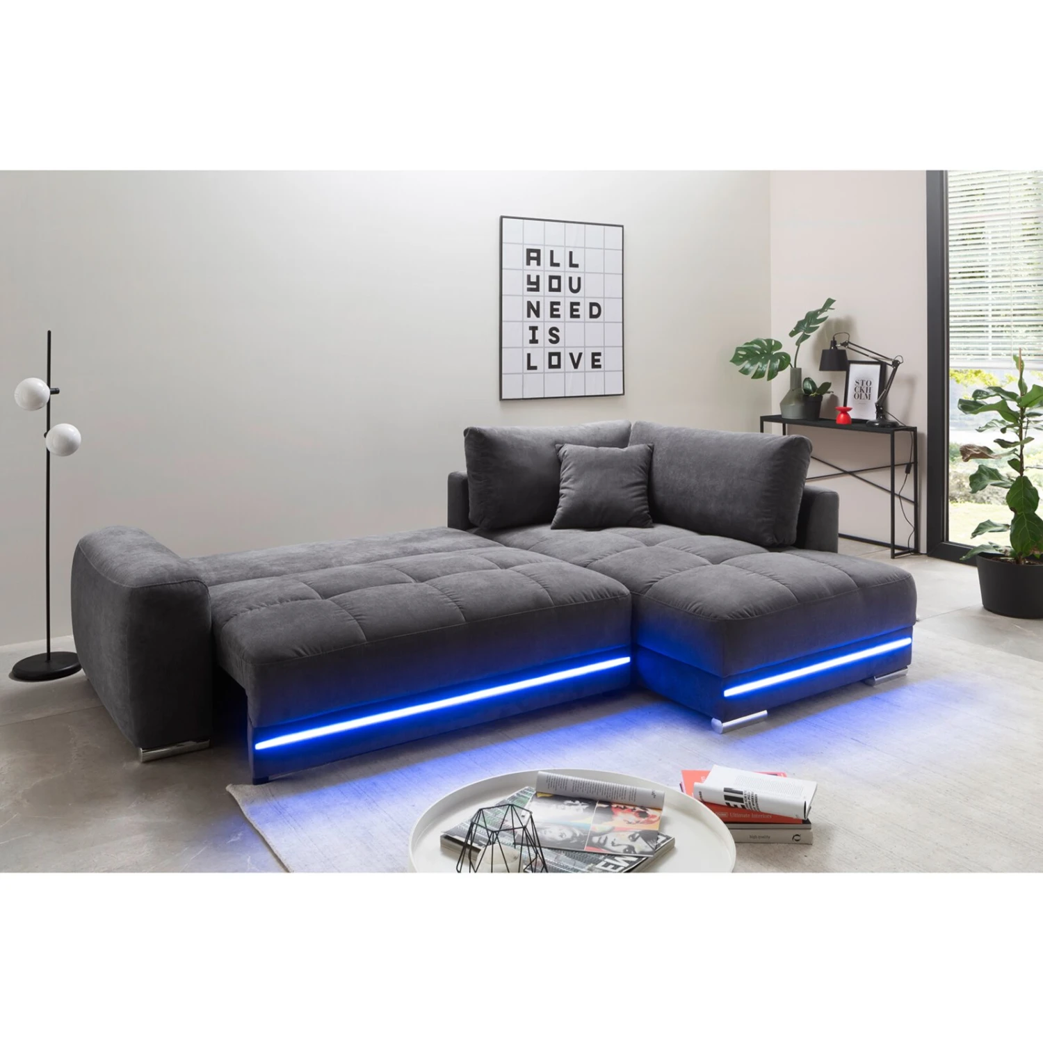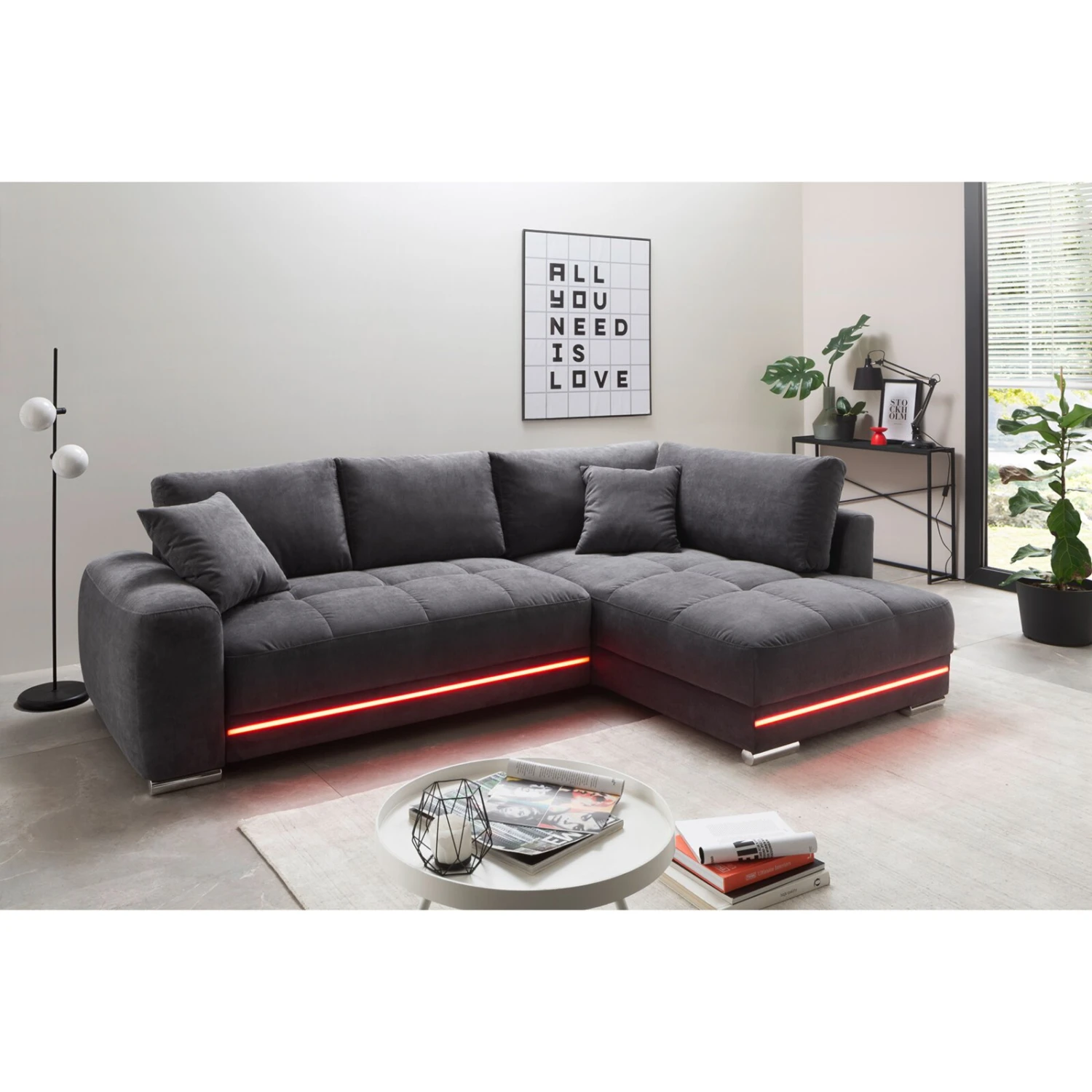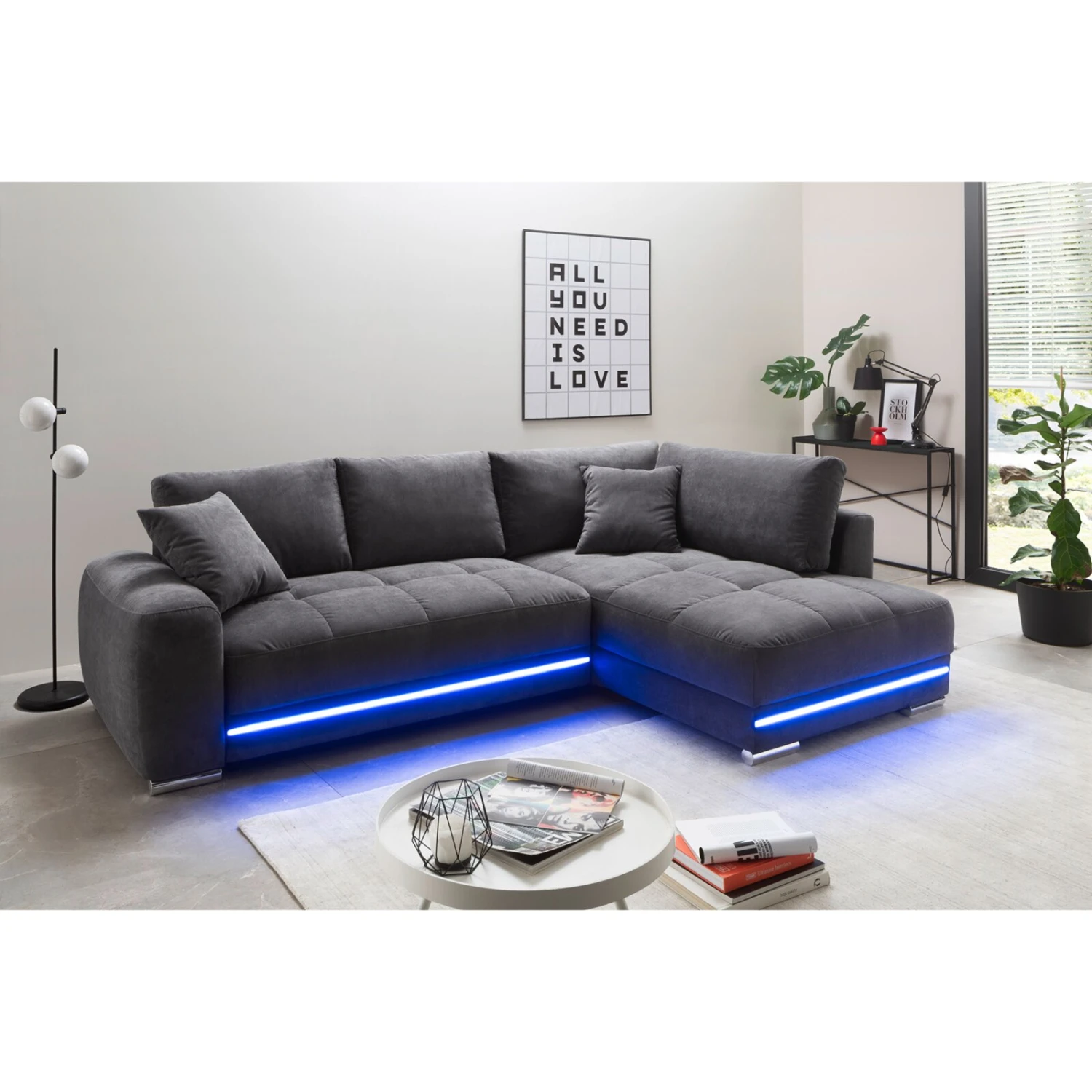 Ecksofa – anthrazit – Microfaser – LED-Beleuchtung