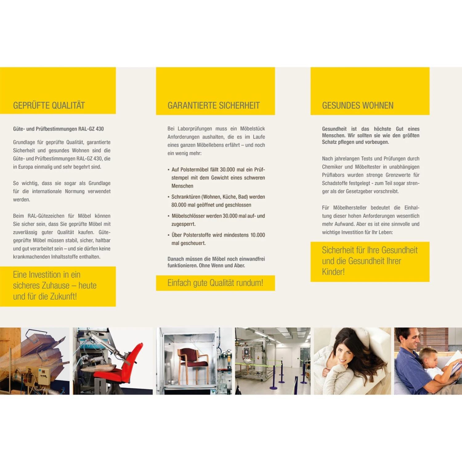 Dieser Sessel ist durch die Deutsche Gütegemeinschaft Möbel e.V. ausgezeichnet. Das „Goldene M“ bestätigt hiermit geprüfte Qualität, garantierte Sicherheit und gesundes Wohnen. Zertifizierungsnummer: H20100127