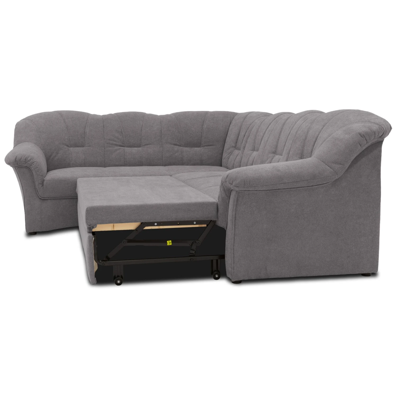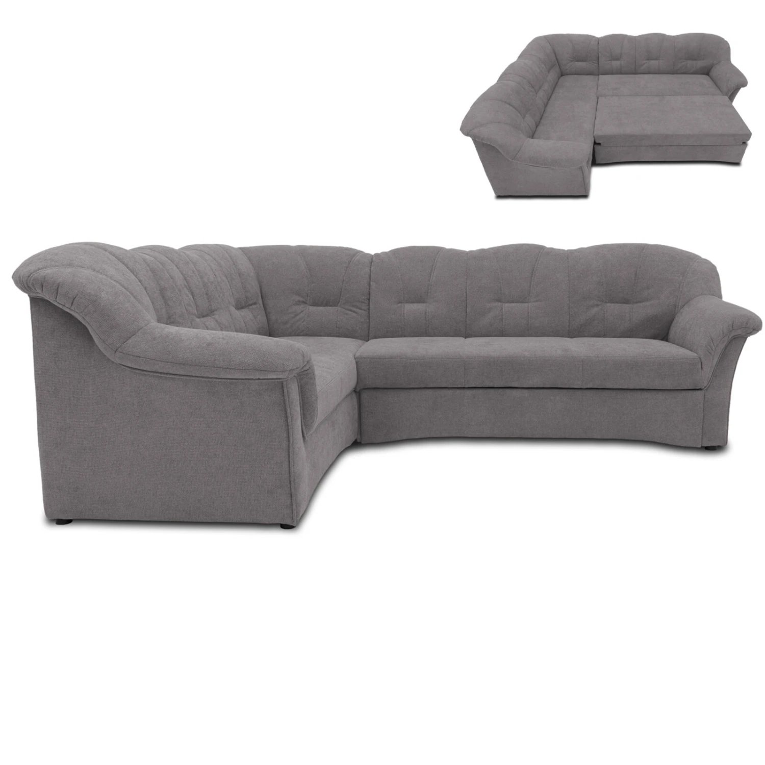 Modernes Ecksofa in Dunkelgrau. Mit der Liegefunktion hast du die Möglichkeit deinen Gästen einen vorübergehenden Schlafplatz anzubieten oder sie wird zur zusätzlichen Entspannung ausgezogen. Der Microfaserbezug ist weich und formbeständig. Da der Rücken ebenfalls mit dem Originalstoff bezogen ist, kann das Sofa auch in der Mitte des Raumes platziert werden. Mach dieses Ecksofa zu deinem neuen Wohlfühlort im Wohnzimmer!