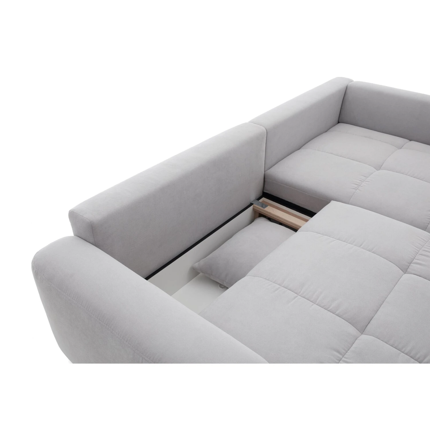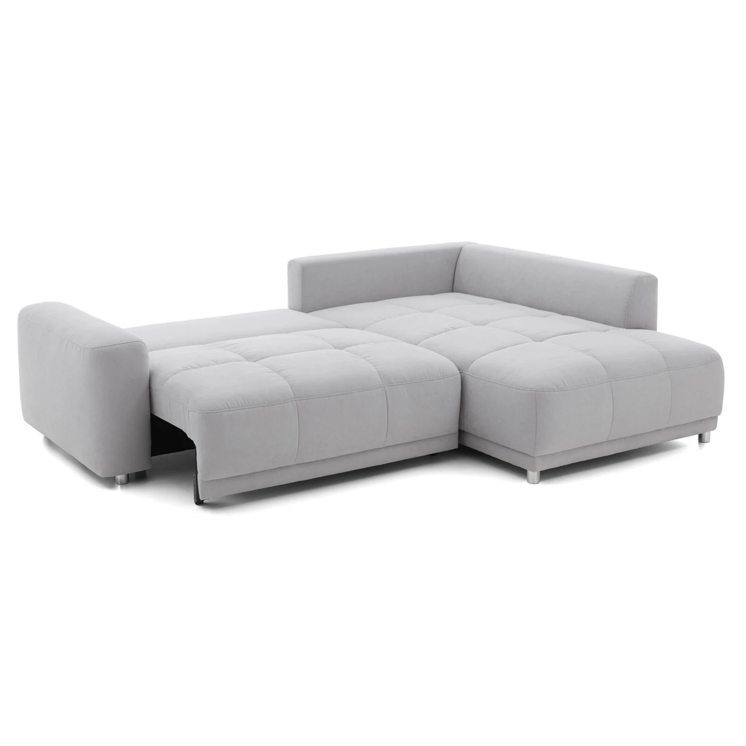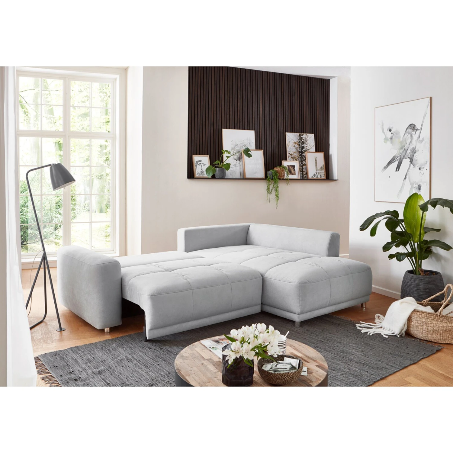 Lassen Sie mit diesem tollem Ecksofa in Grau Ihr Wohnzimmer in einem neuen Glanz erstrahlen. Der integrierte Staukasten sorgt für eine wunderbare Erweiterung Ihres Stauraums. Außerdem kann dank der Liegefunktion auch ganz einfach und bequem Ihr Besuch bei Ihnen übernachten oder sie wird für Sie zur Wohlfühloption bei langen Filmabenden. Die Polsterung sorgt dazu noch für ein einzigartiges Sitzgefühl und überzeugt durch seine Langlebigkeit. Der Bezug ist zudem sehr pflegeleicht, wodurch dieses Sofa zum frustfreien Gebrauch einlädt. Holen Sie sich dieses Sofa in Ihre vier Wände und ergänzen Sie Ihren Wohnraum mit diesem gemütlichen und schönen Sofa.