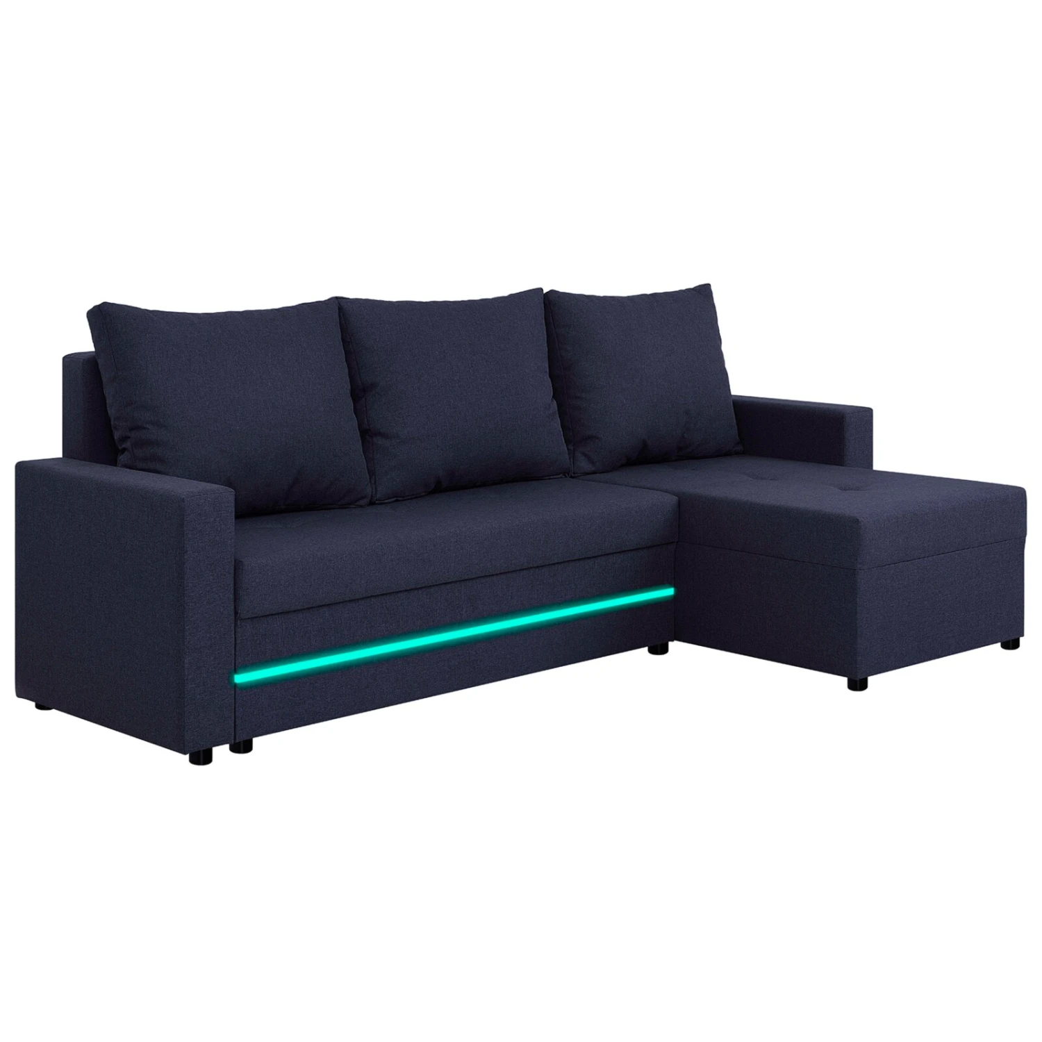 Das Ecksofa in schickem Grau verfügt über eine Liegefunktion und einen Staukasten. Mit der Liegefunktion haben Sie die Möglichkeit spontanen Übernachtungsgästen einen vorrübergehenden Schlafplatz anzubieten. Mit dem Staukasten haben Sie die Möglichkeit Bettwaren zu verstauen. Besonderes Highlight des Sofas ist die LED-Leiste. Mit der im Lieferumfang enthaltenen Fernbedienung können Sie die Farbauswahl steuern und ganz nach Ihrer Stimmung einstellen. Im Lieferumfang enthalten sind zudem drei Rückenkissen.