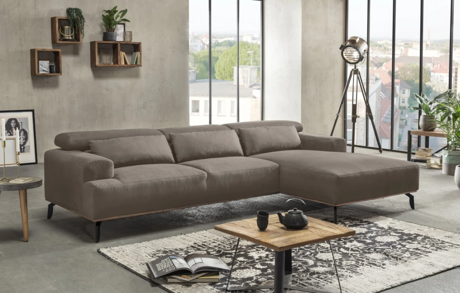 Dieses 285 Zentimeter breite Ecksofa überzeugt mit seiner stilvollen Optik. Der Braunton ist zeitlos und lässt sich mit den unterschiedlichsten Wohnstilen kombinieren. Die schwarzen Metallfüße runden das tolle Gesamtbild noch stimmig ab. Für den angenehmen Komfort sorgen die Schaumkern-Polsterung und die komfortable Wellenunterfederung. Mit dieser Wohlfühloase sind gemütliche Fernsehabende vorprogrammiert!