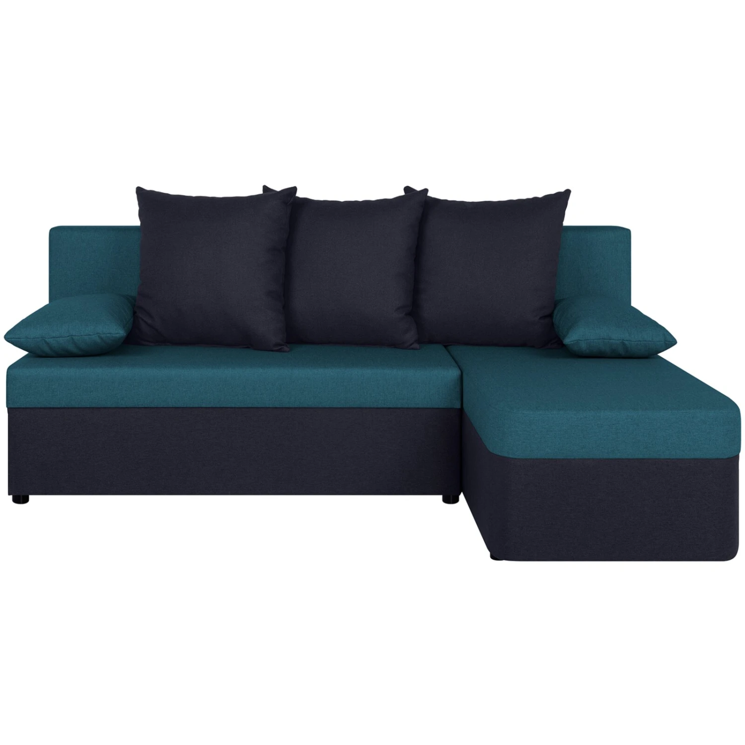 Das moderne Ecksofa in Petrol-Anthrazit verfügt über zwei praktische Funktionen. Die Liegefunktion bietet sich bestens für spontanen Übernachtungsbesuch an. Zudem eigent sie sich ebenfalls für gemütliche Filmabende. Der Staukasten verfügt über viel Platz, um Decken und Kissen zu verstauen. Drei Rücken- und zwei Armlehnenkissen verleihen dieser Couch das gewisse Etwas.