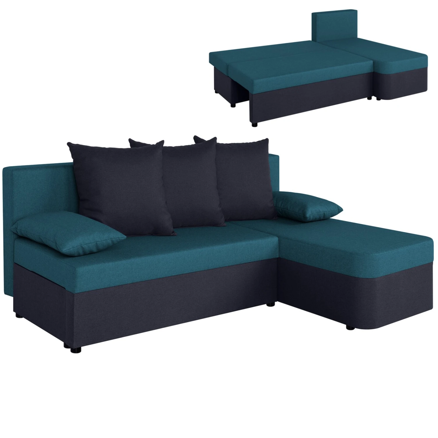 Ecksofa – petrol-anthrazit – Staukasten – Liegefunktion